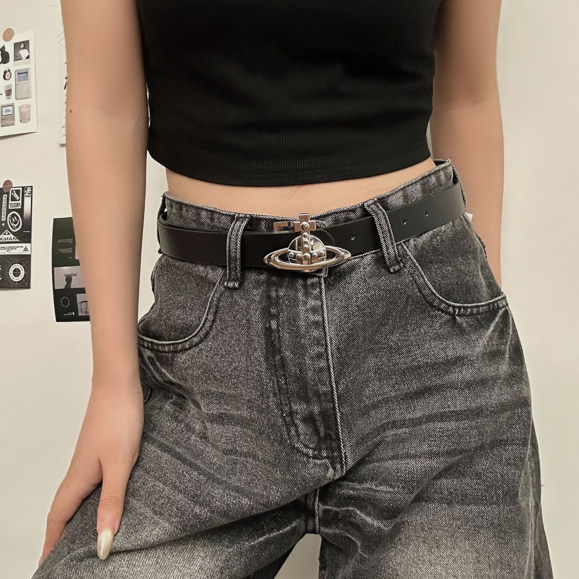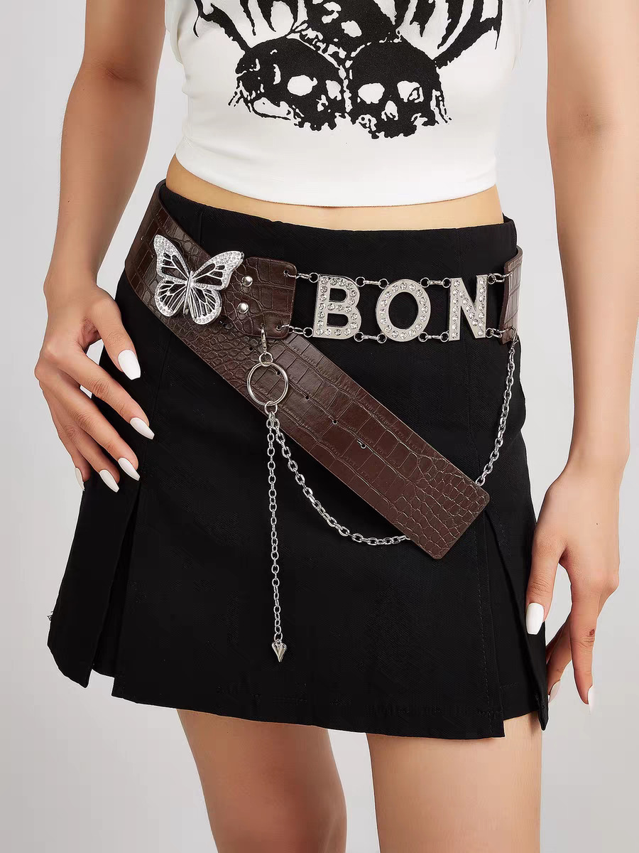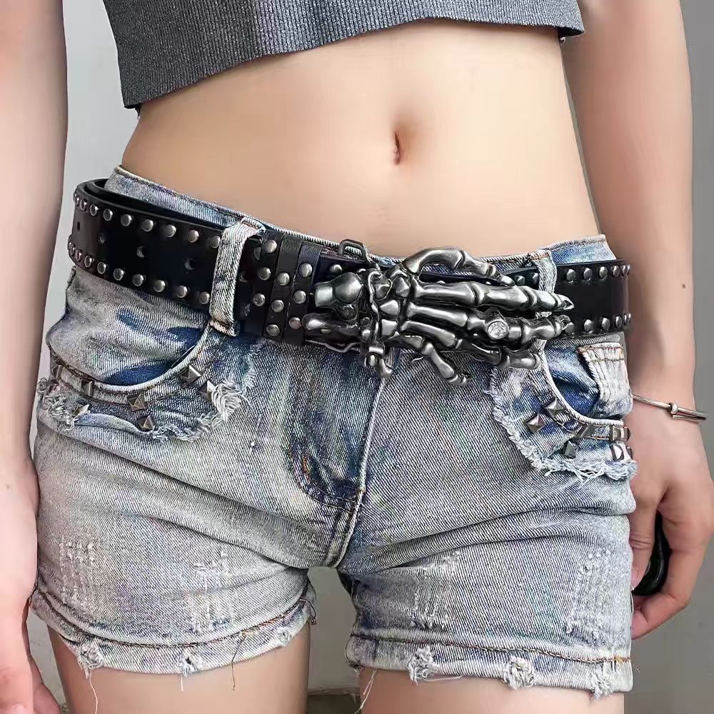 미국식 레트로 버클 벨트 여성용 리벳 신형 다크 브라운 벨트 청바지 한국식 올매치 허리 체인 트렌디