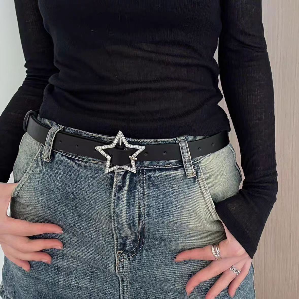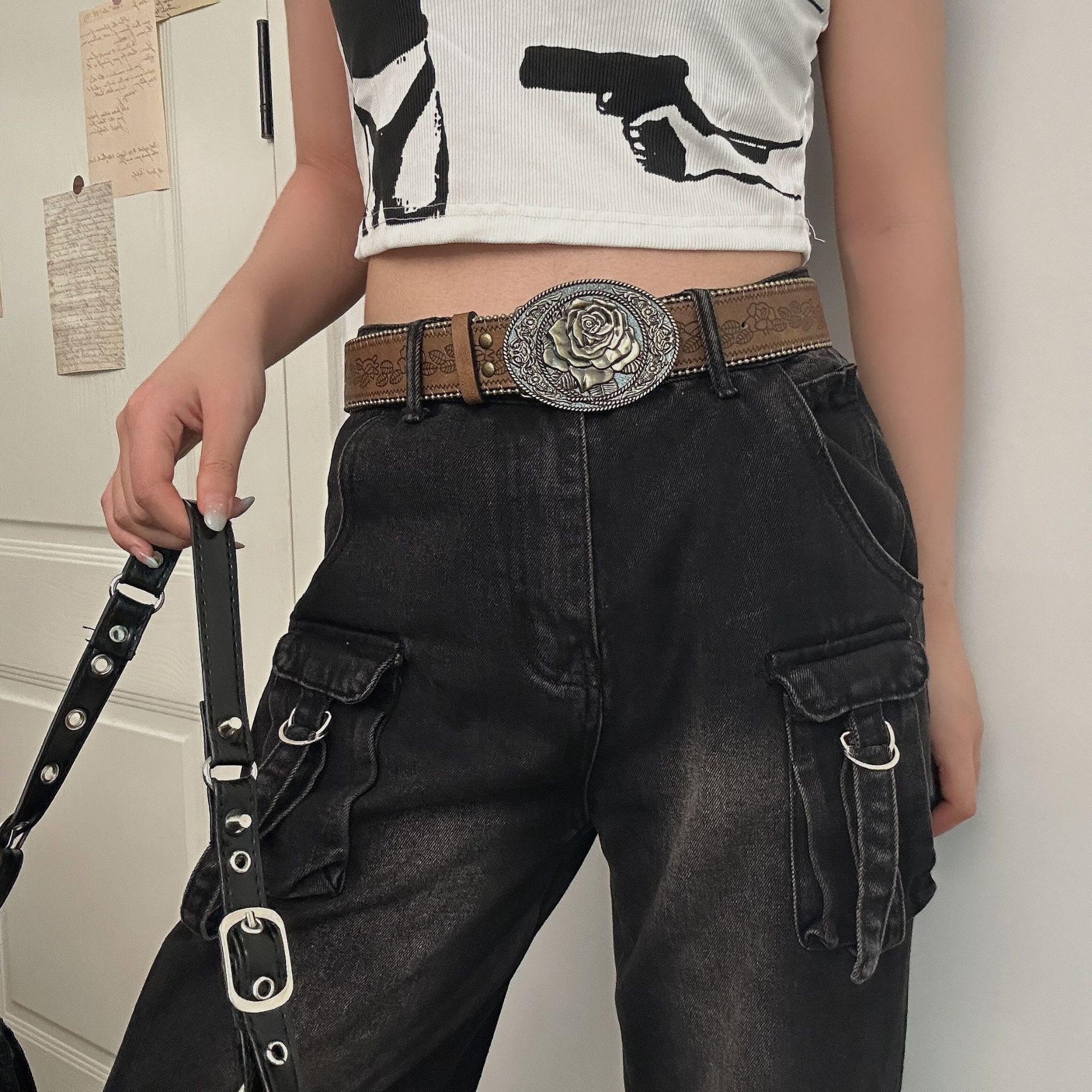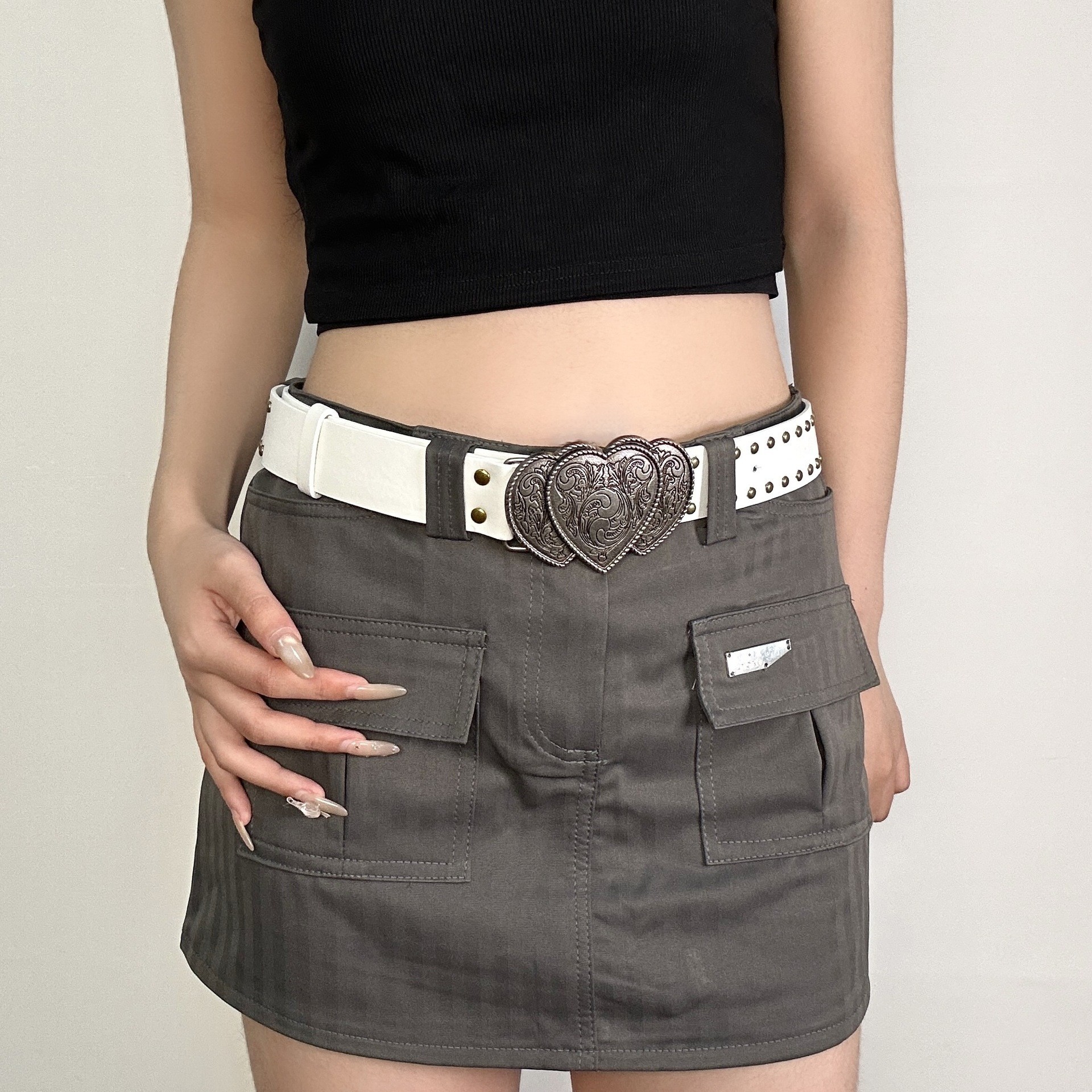 미국식 레트로 버클 벨트 여성용 리벳 신형 다크 브라운 벨트 청바지 한국식 올매치 허리 체인 트렌디스토어 가기
