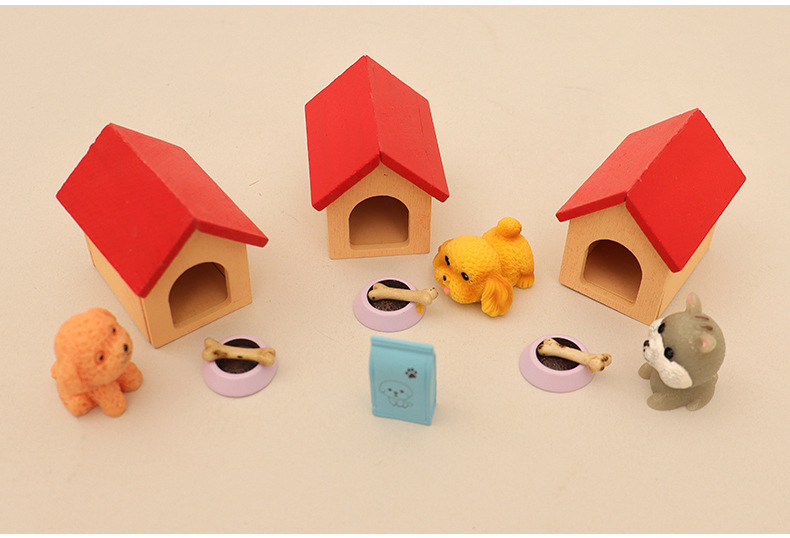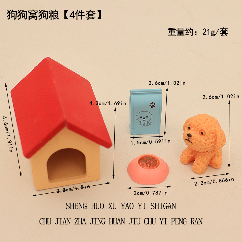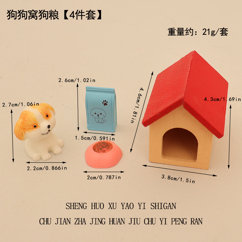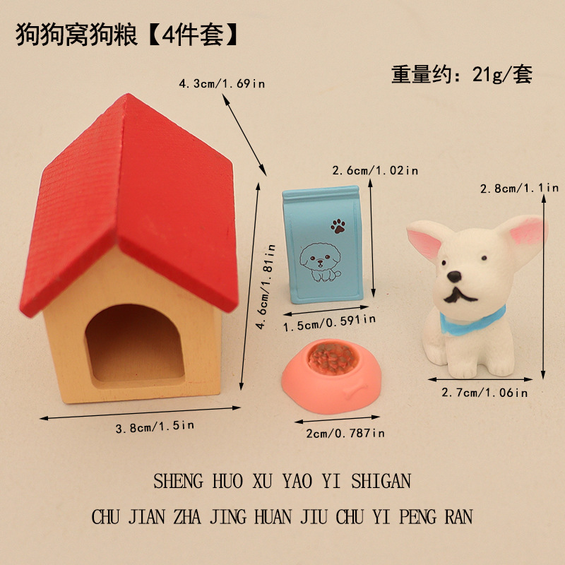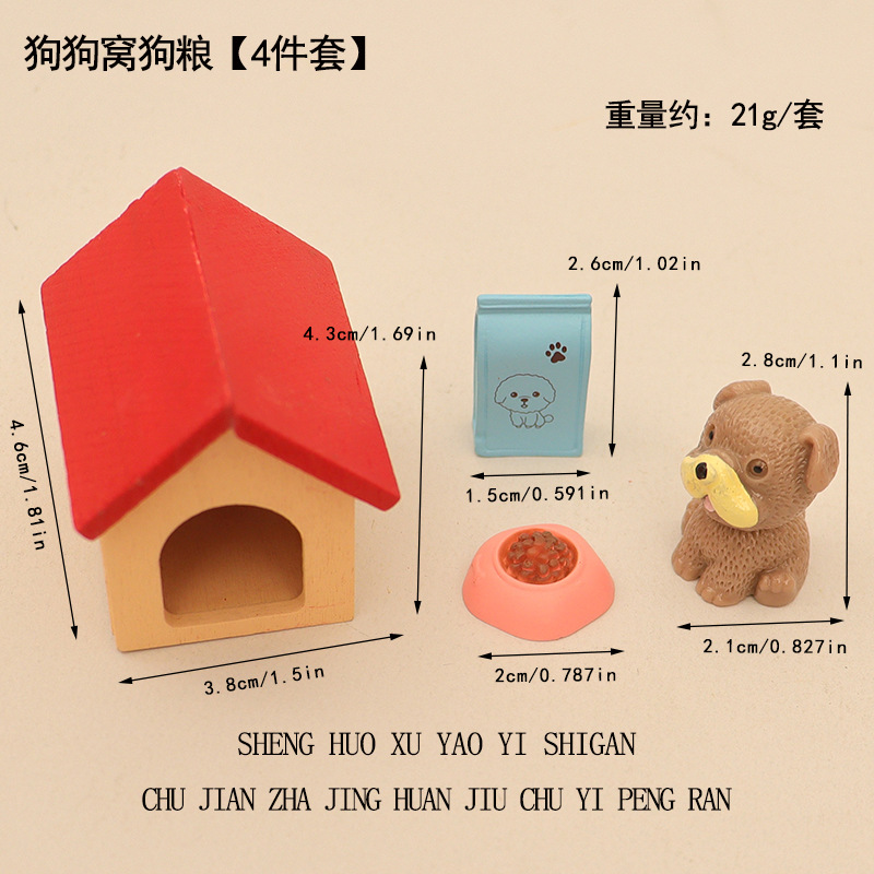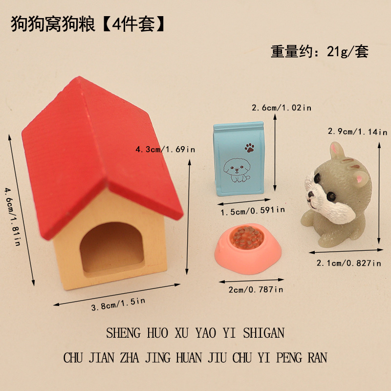 국경 간 미니 강아지 애완 동물 집 개밥 그릇 개집 집 놀이 장면 장식 액세서리 모델 장식품스토어 가기