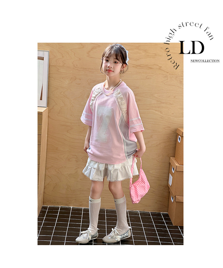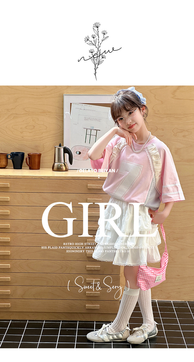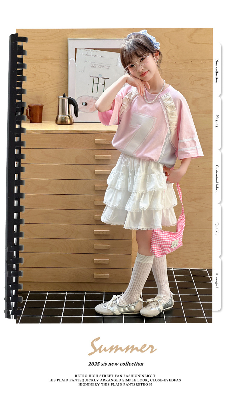 국경 간 소녀 세트 2025 새로운 여름 서양 스타일 유행 중년 어린이 레이스 티셔츠 스커트