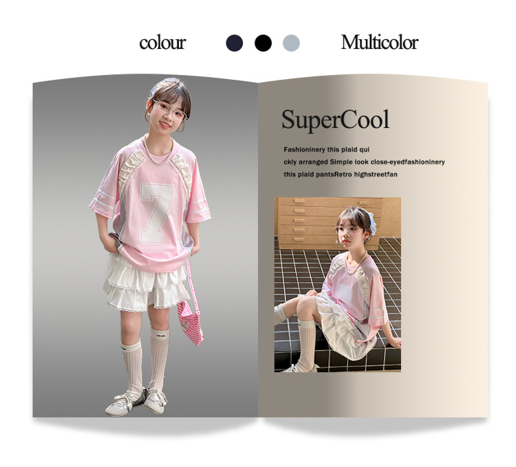 국경 간 소녀 세트 2025 새로운 여름 서양 스타일 유행 중년 어린이 레이스 티셔츠 스커트스토어 가기