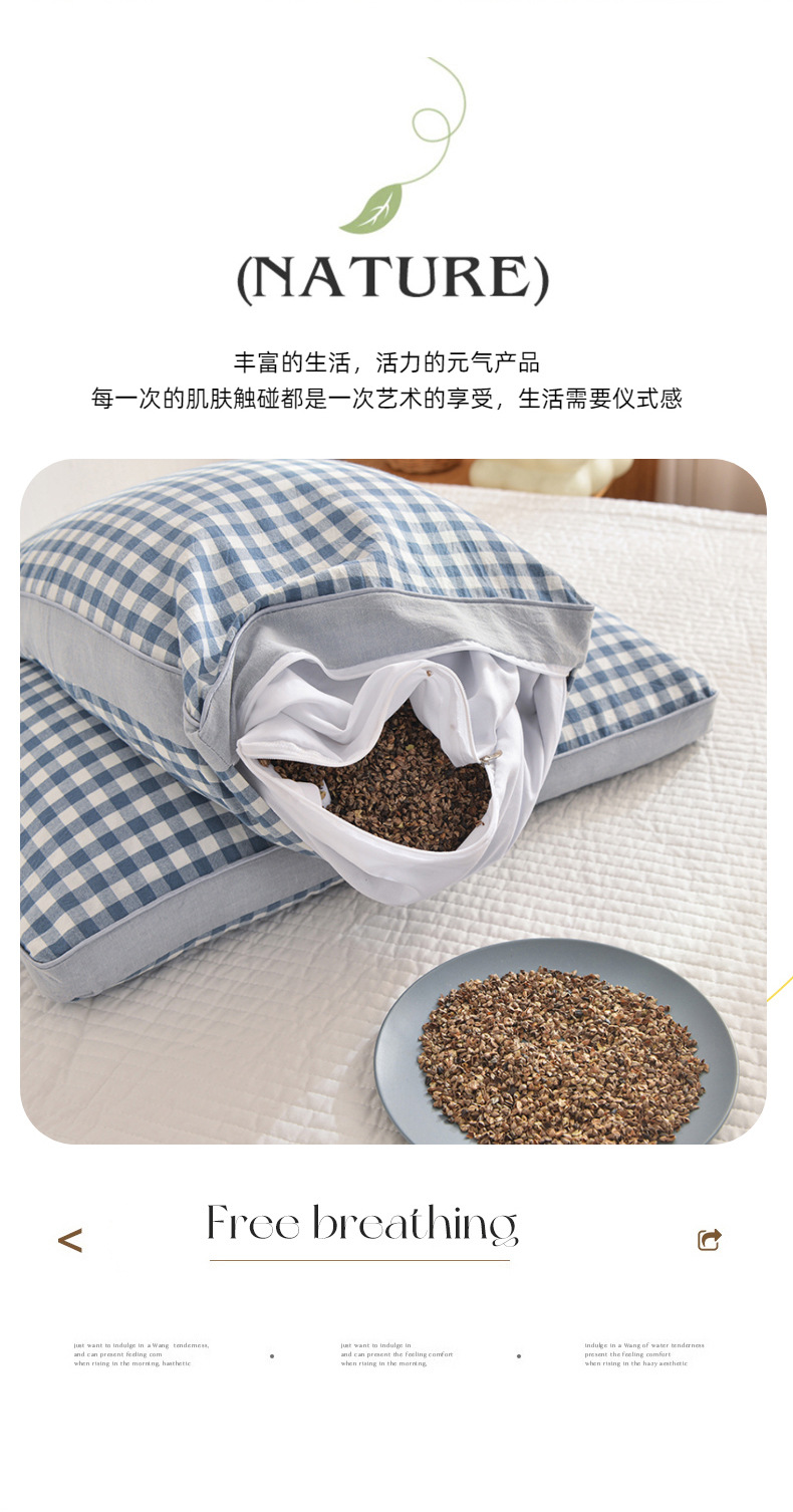 메밀베개 한쌍 기숙사 메밀껍질 베개심 성인용 하드베개 경추보호 남녀공용 풀쉘 워싱면 베갯잇