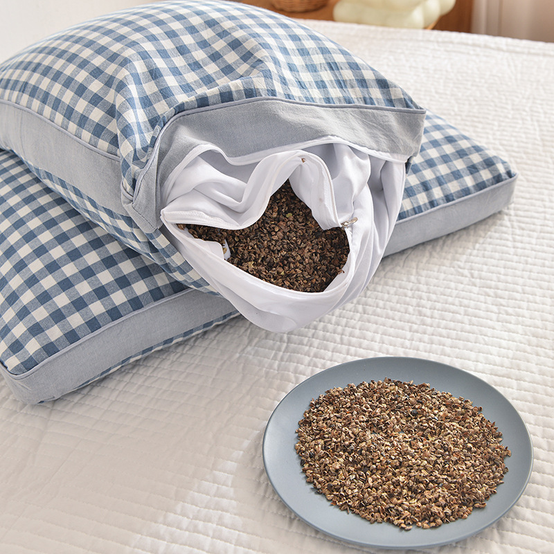 • [블루] 단층 안감 + 워시드 코튼 베갯잇 + 90등급 메밀껍질