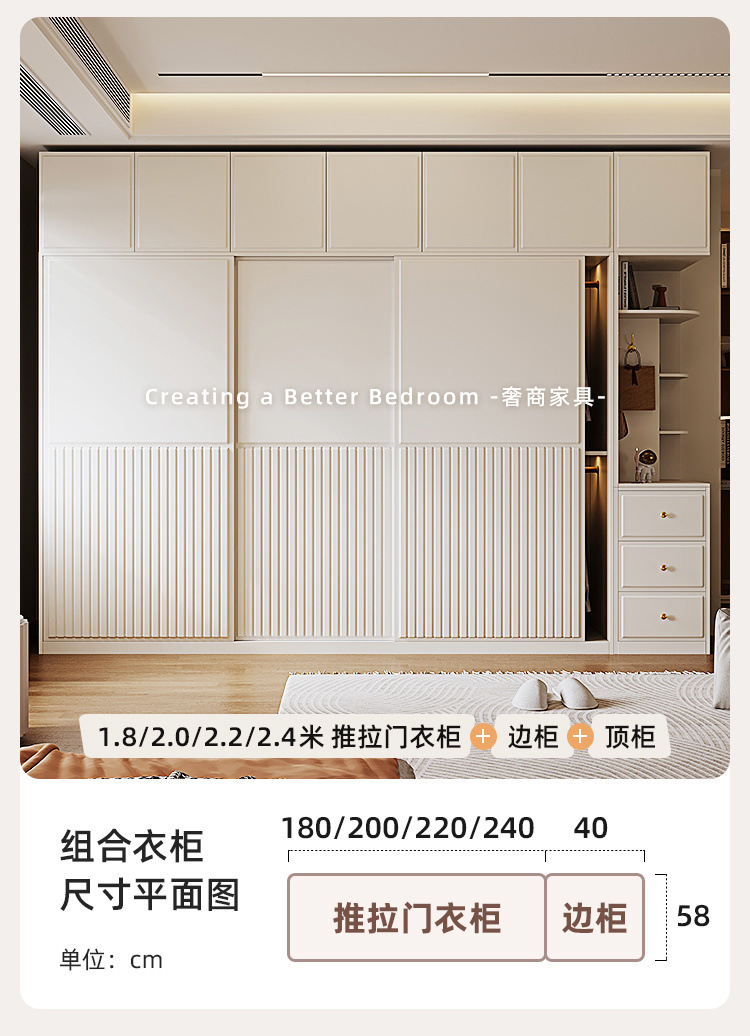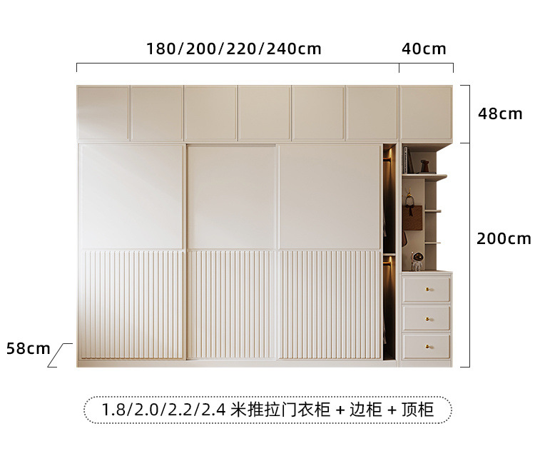 • (3도어) 2.4m 옷장 + 사이드장 + 상단장 [수출품질]