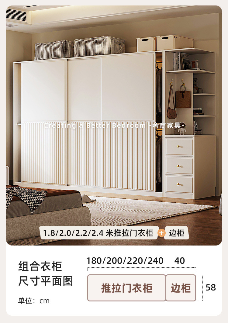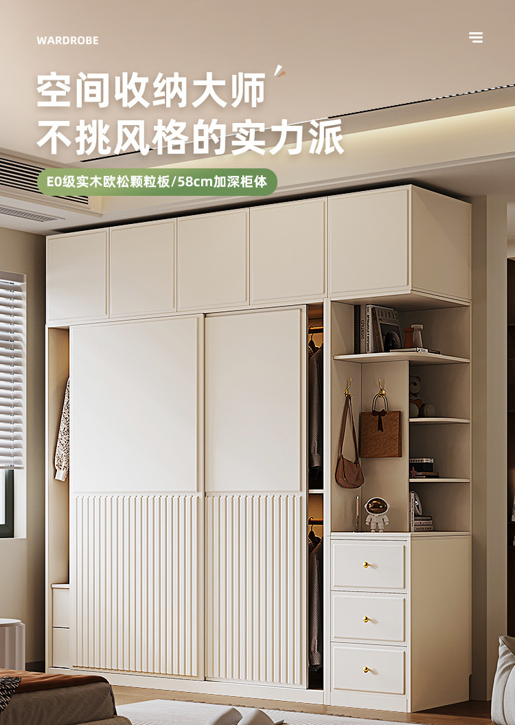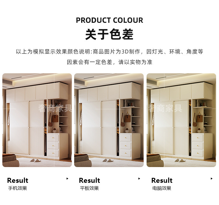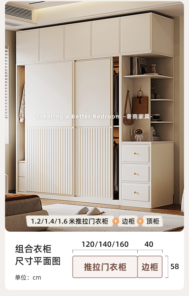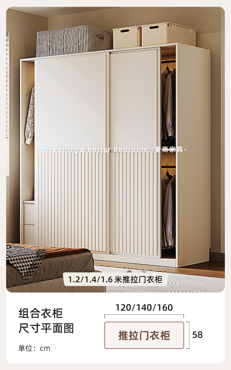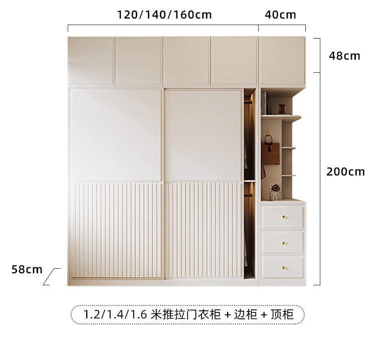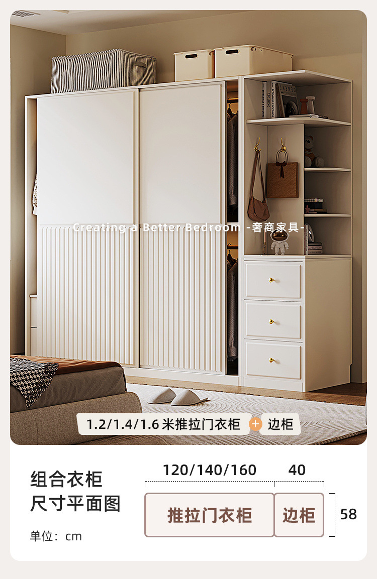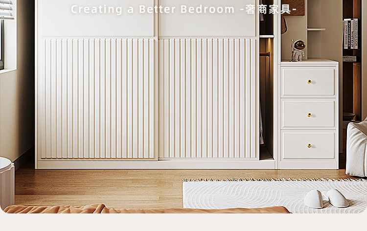 미닫이 문 옷장 간단한 현대적인 흰색 침실 보관 캐비닛 작은 아파트 가정용 미닫이 문