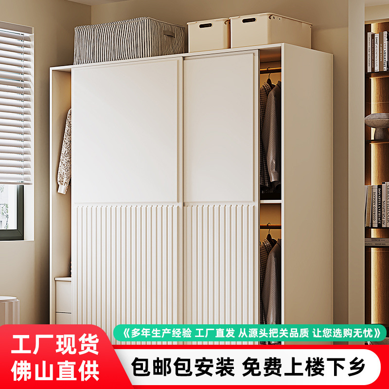 미닫이 문 옷장 간단한 현대적인 흰색 침실 보관 캐비닛 작은 아파트 가정용 미닫이 문스토어 가기