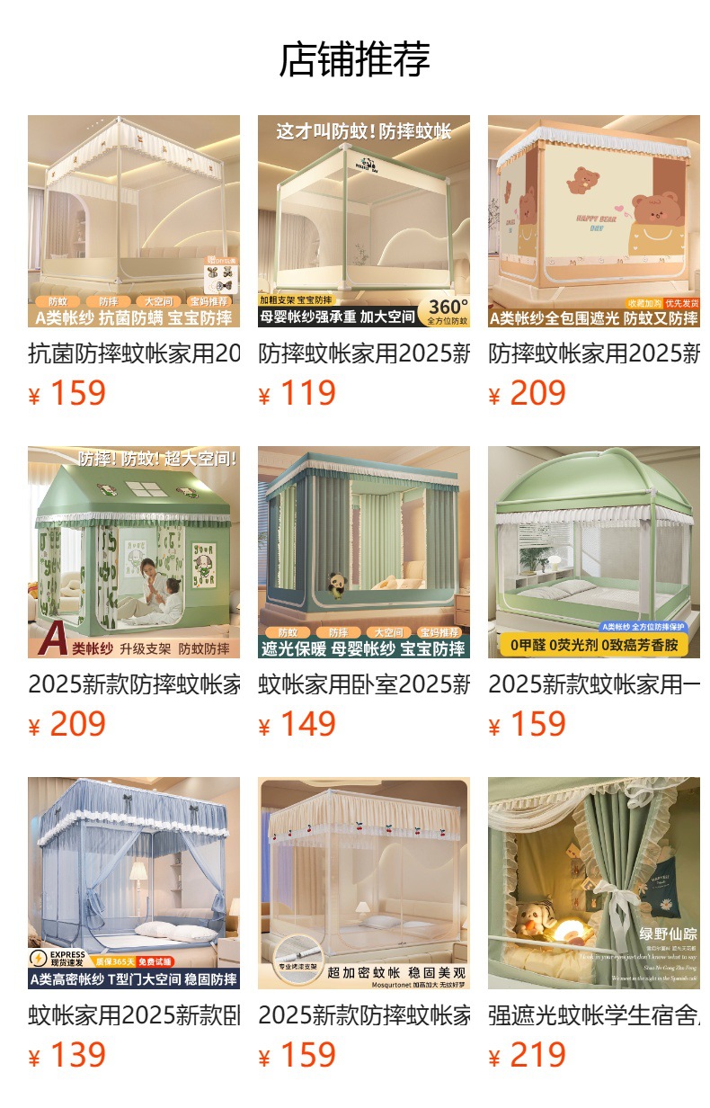 음영 안티 드롭 모기장 2025 새로운 스타일 침대 커튼 가구 3 도어 침실 아기의 안티 드롭 침대 텐트스토어 가기
