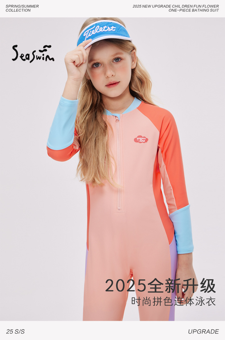 2025 새로운 어린이 수영복 소녀 스포츠 원피스 긴팔 바지 어린이 전문 패션 수영복 도매스토어 가기
