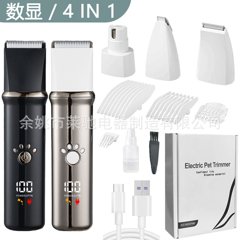 配件:1主机含宽刀头+2限位梳(3mm/6mm,9mm/12mm)+1磨甲刀头+1窄刀头(限位梳4mm)+1脚丫剃毛刀头(限位梳5.5mm)+1USB线+1毛刷+1说明书