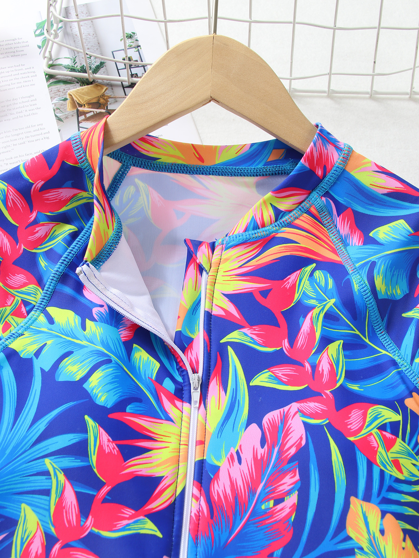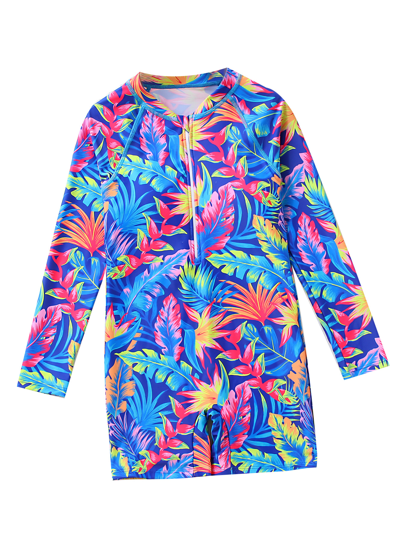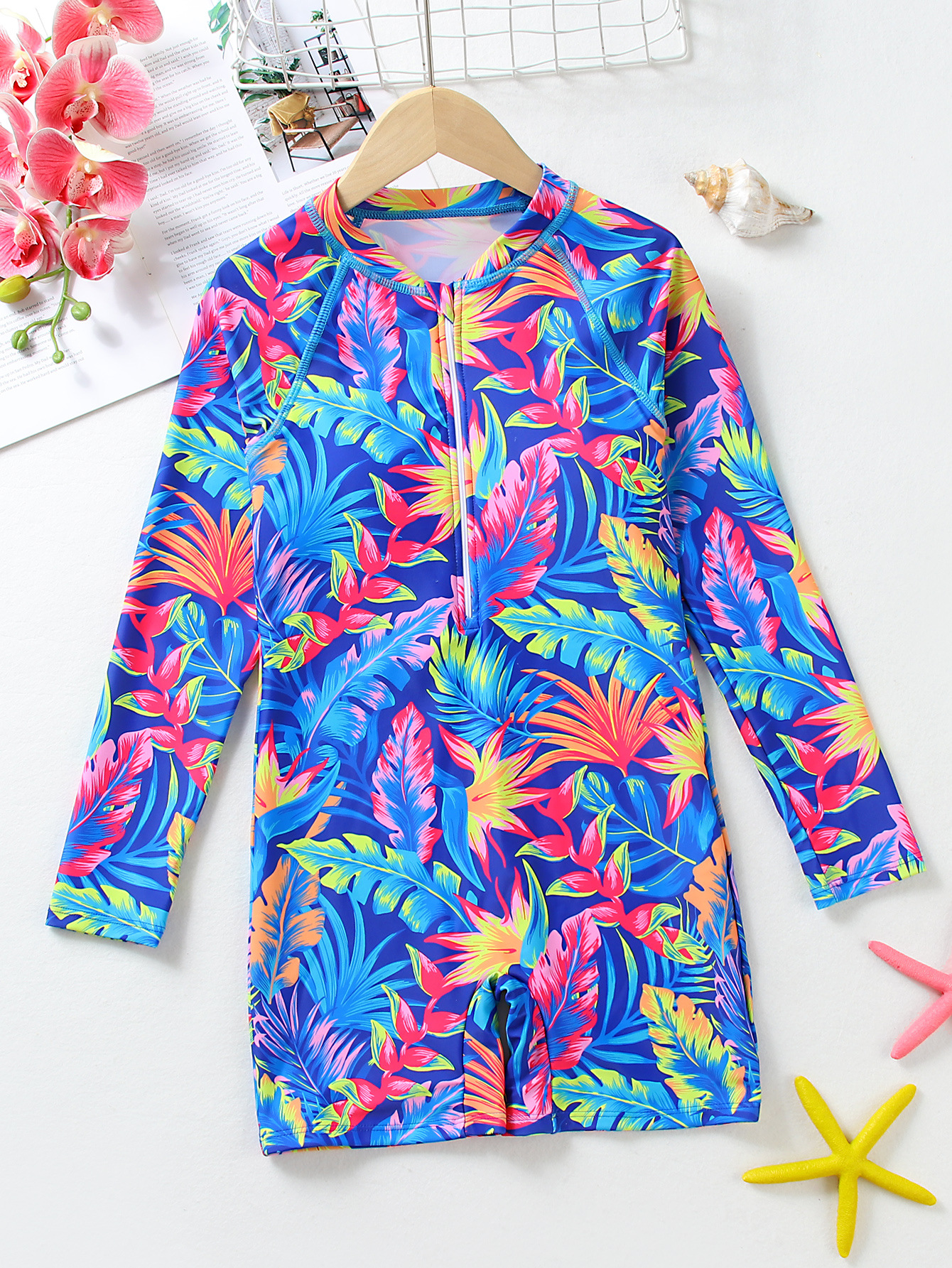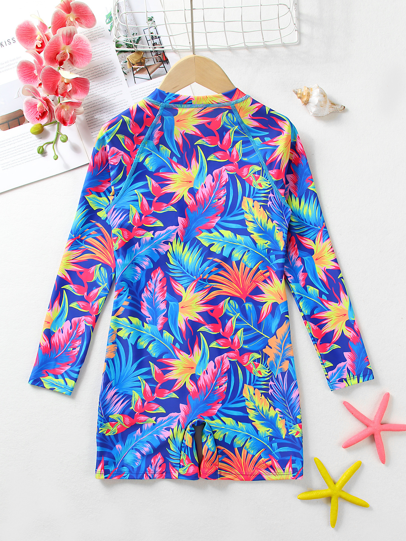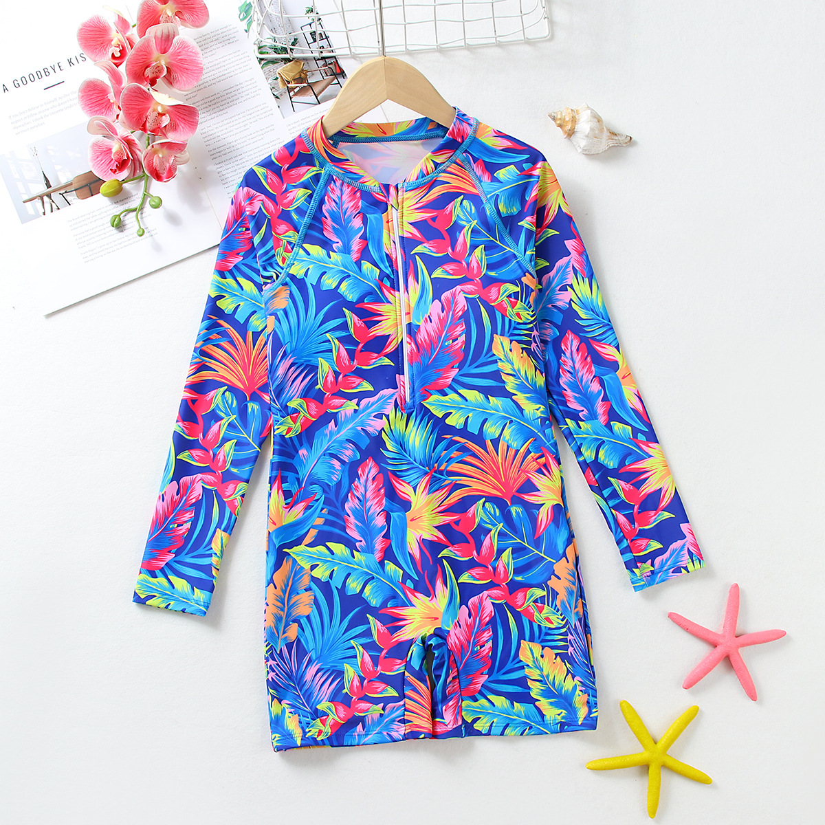 어린이 수영복 여아 원피스 수영복 2025 신상품 수영모 온천 라운드넥 긴팔 자외선 차단 프린트 여아용스토어 가기