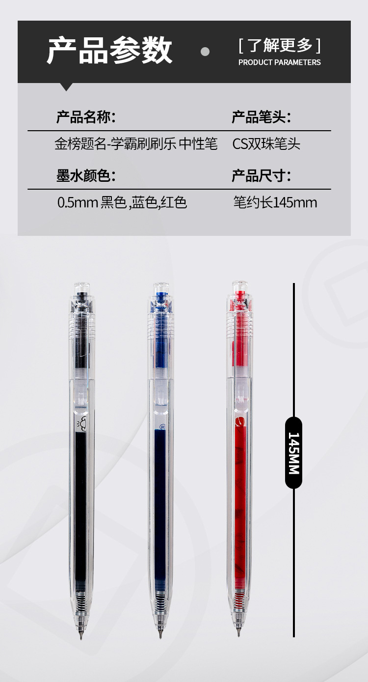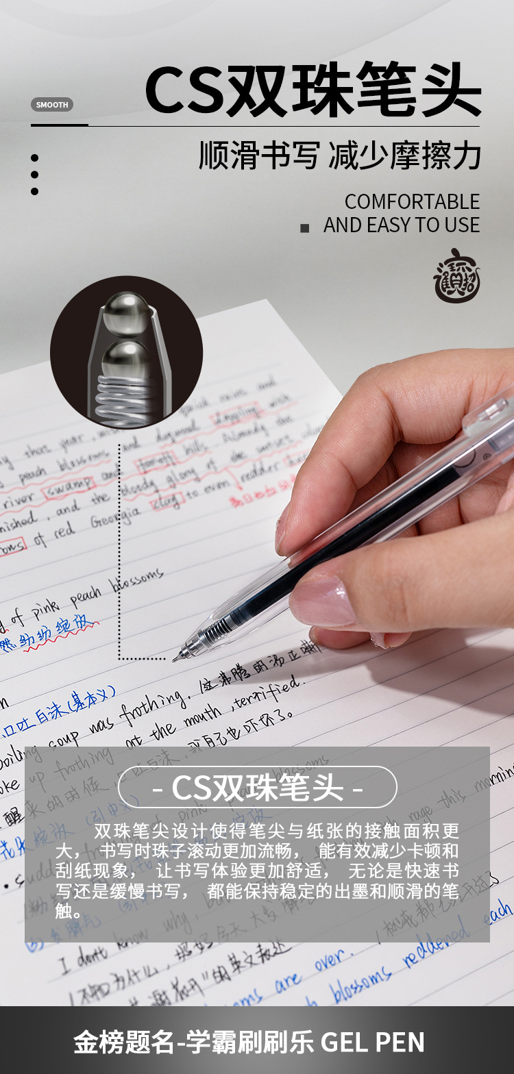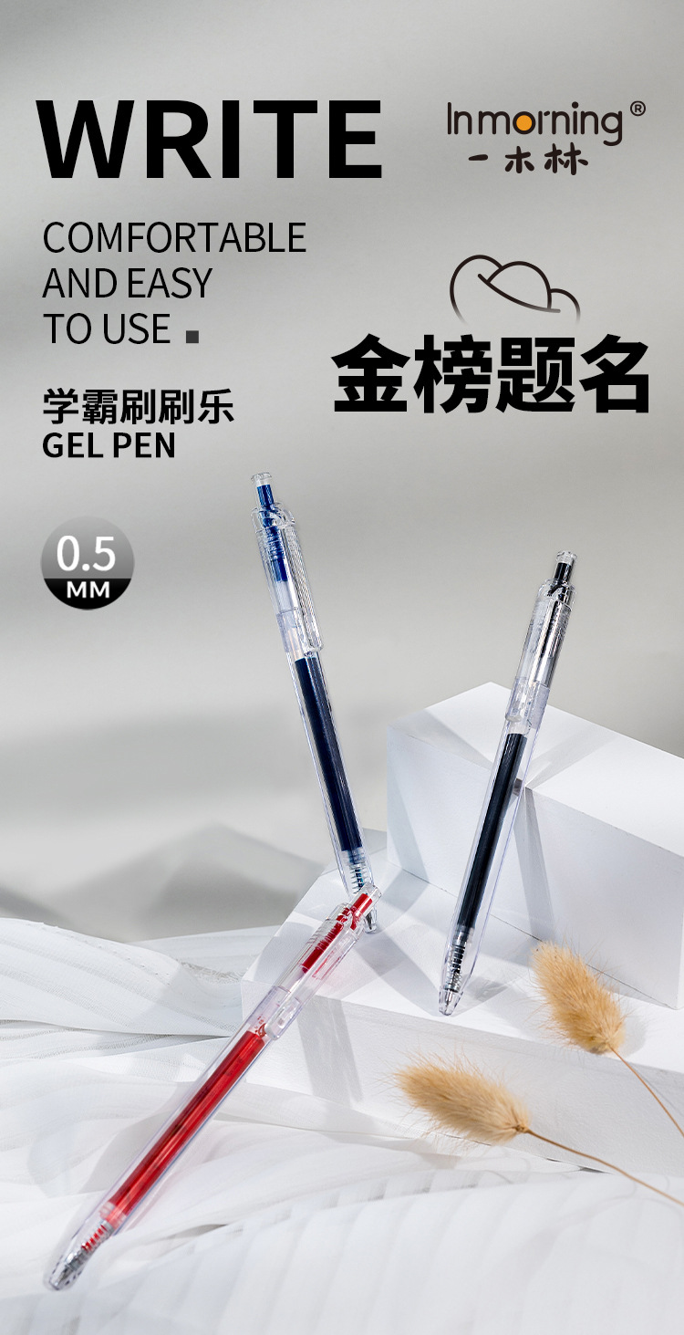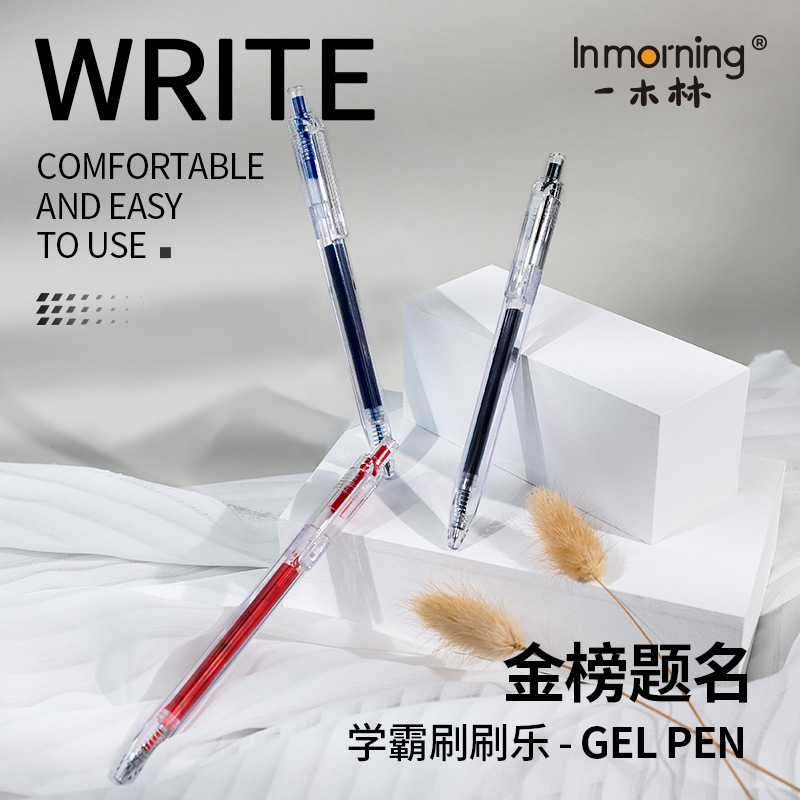 Yimulin Xueba 브러시 음악 프레스 젤 펜 학생 1 번 브러쉬 펜 퀵 드라이 CS 더블 비즈 0.5mm스토어 가기