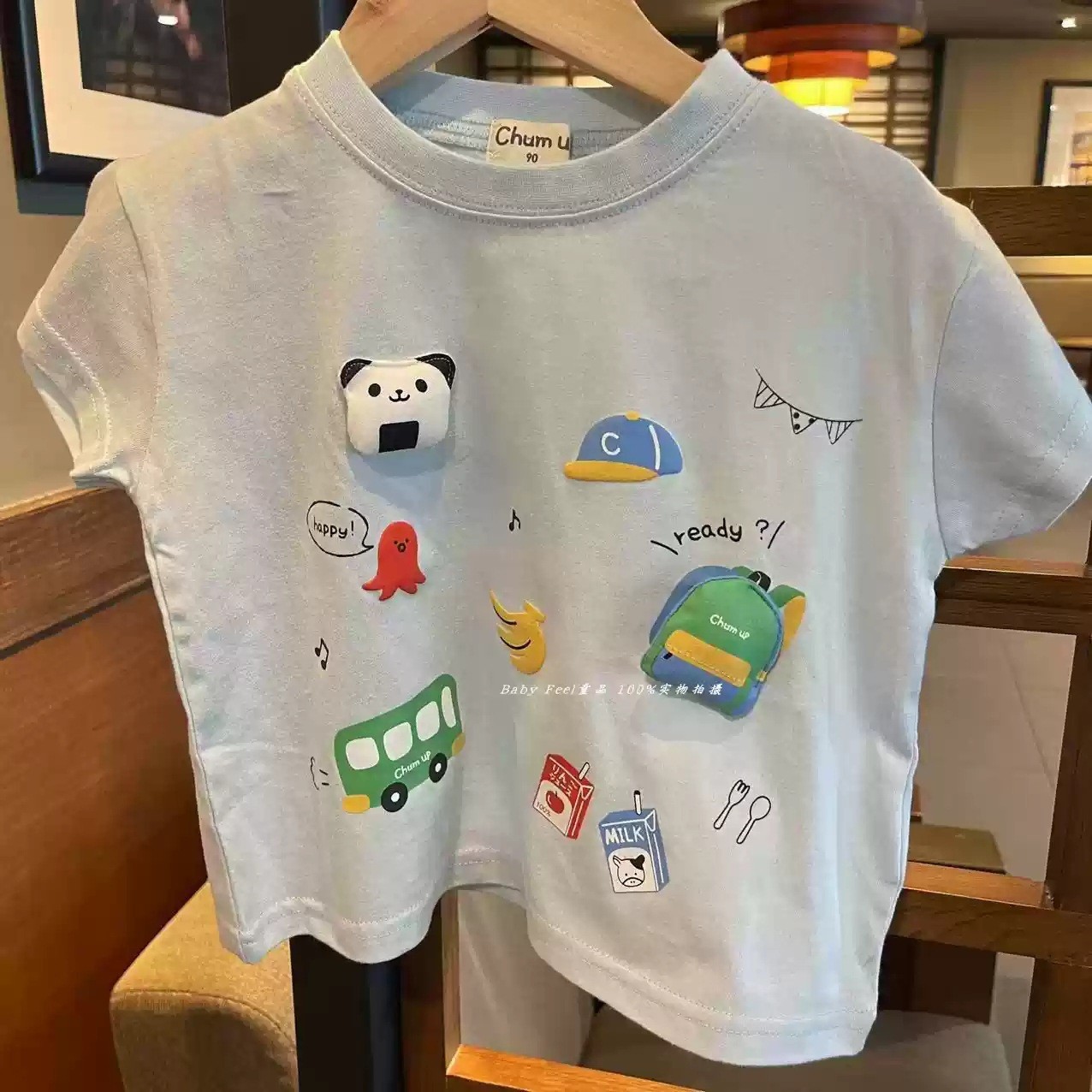 어린이 반팔 2025 여름 소년 일본 유행 브랜드 만화 버그 버그 아기 어린이 면화 반팔 소녀 티셔츠 t스토어 가기