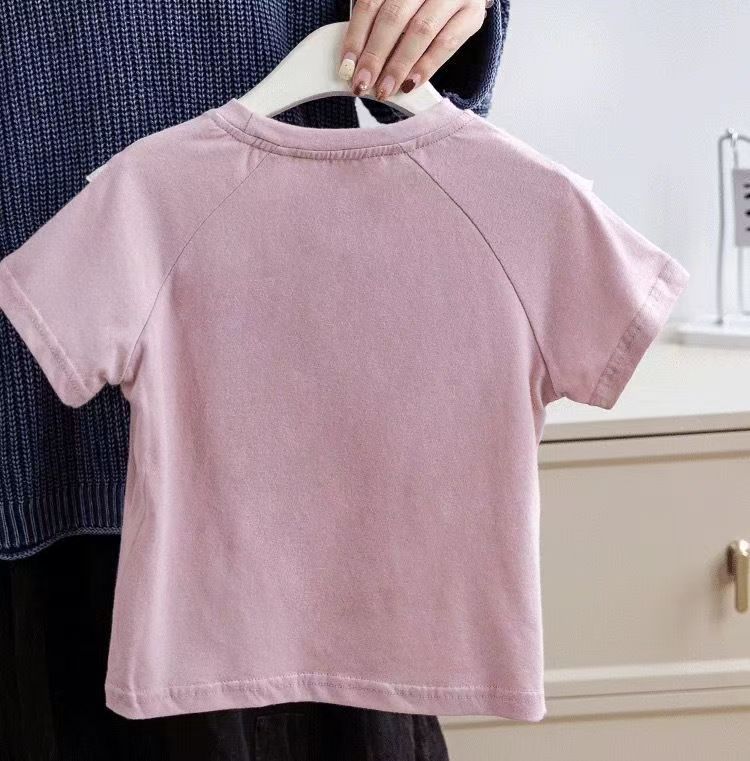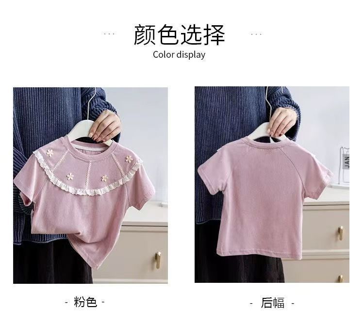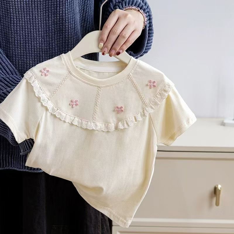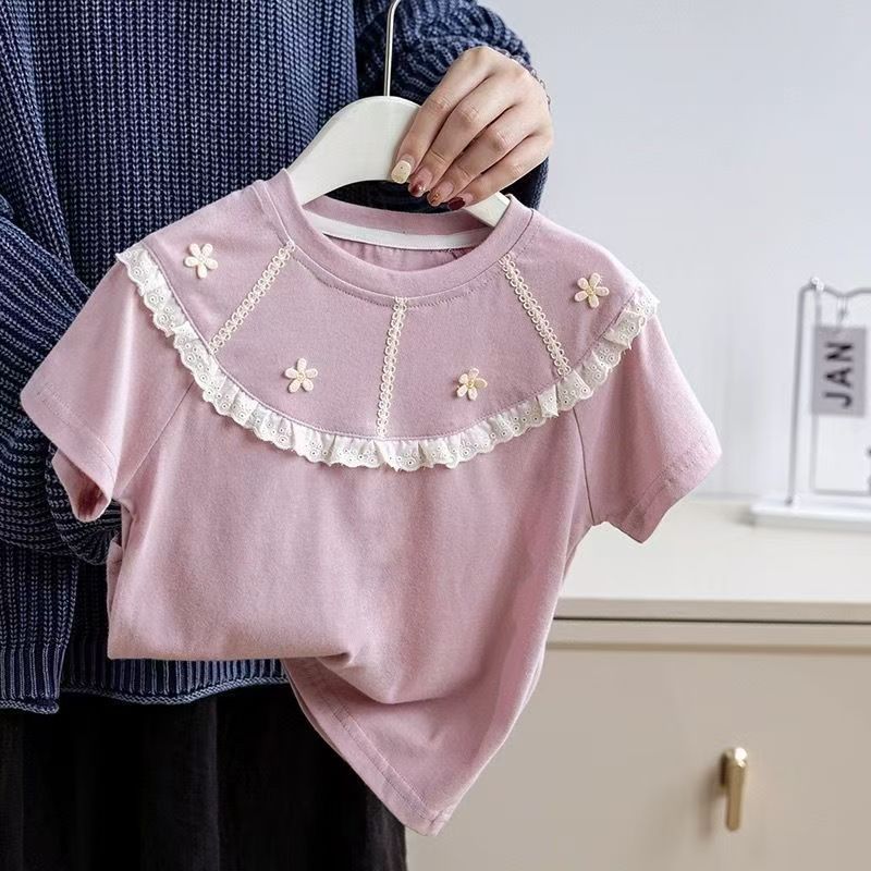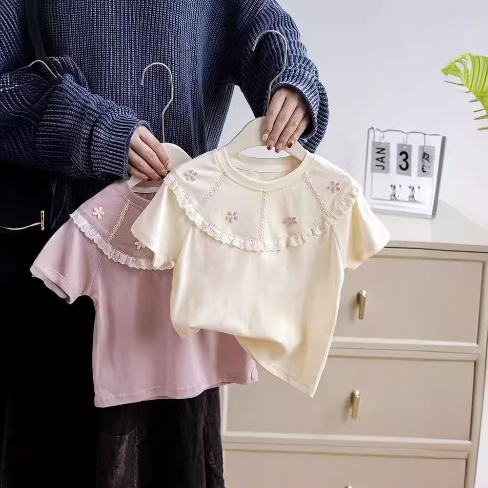 2025 년 여름 새로운 어린이 아기의 캐주얼 서양식 꽃 루즈 탑 유행 소녀의 라슬란 반소매 티셔츠