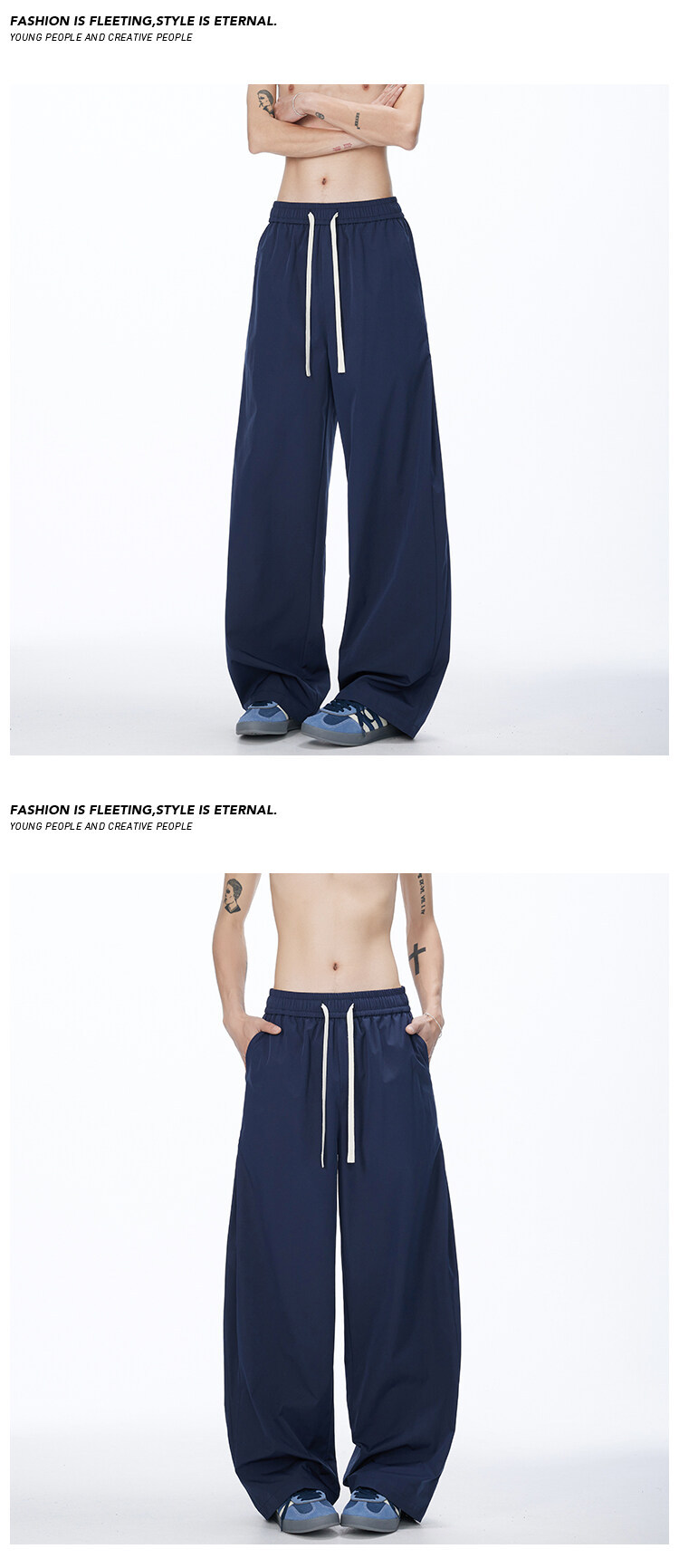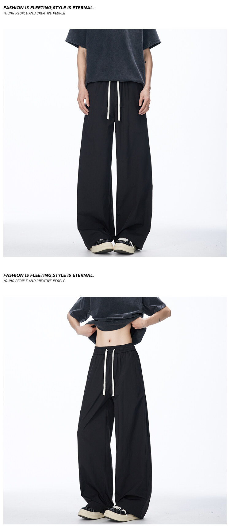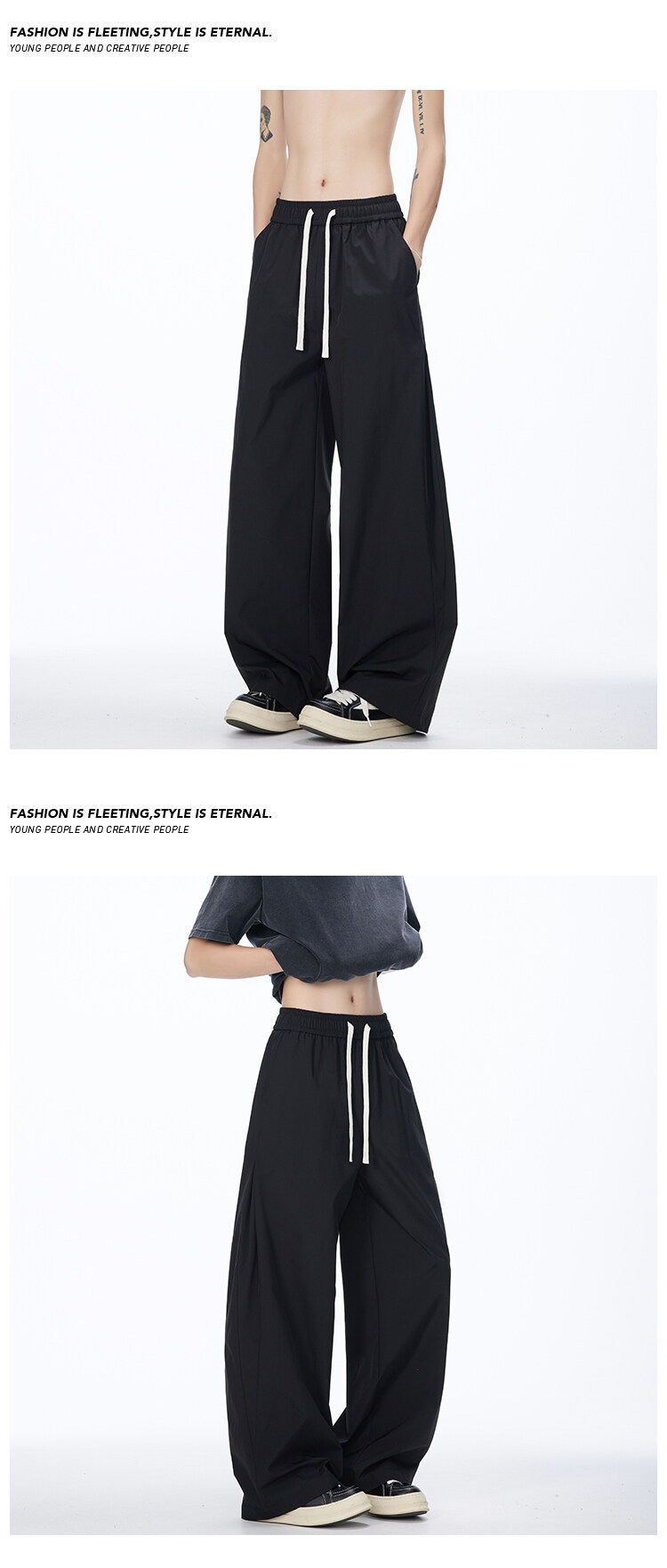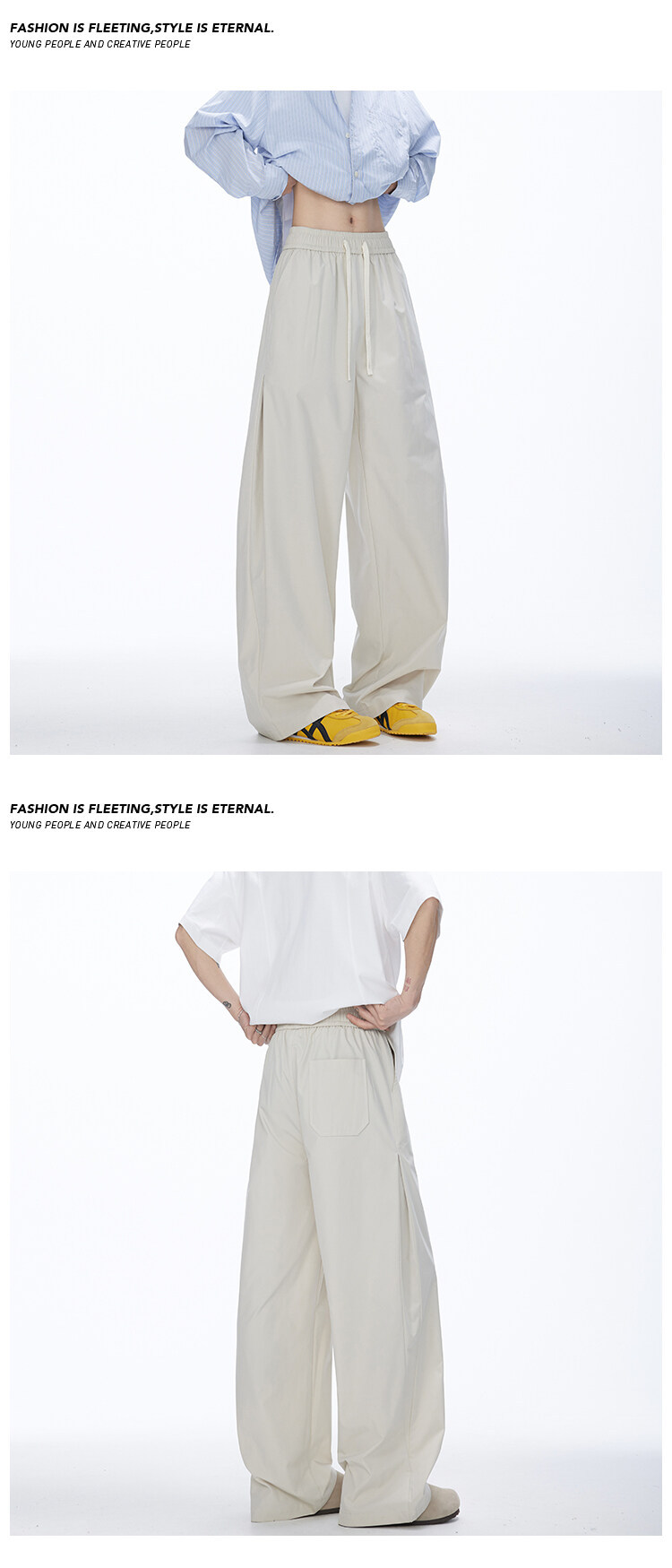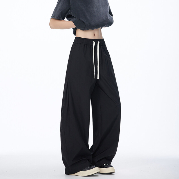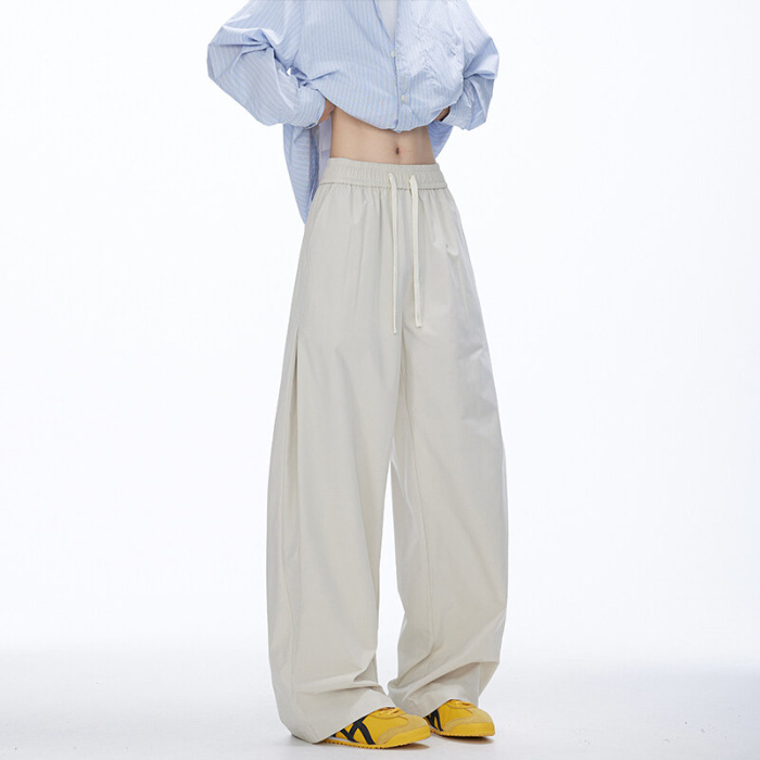 2025 여름 새로운 미국 스타일 복고풍 드레이프 낙하산 귀여운 바지 남자와 여자 와이드 레그 재즈 댄스 바나나 시미 터스토어 가기