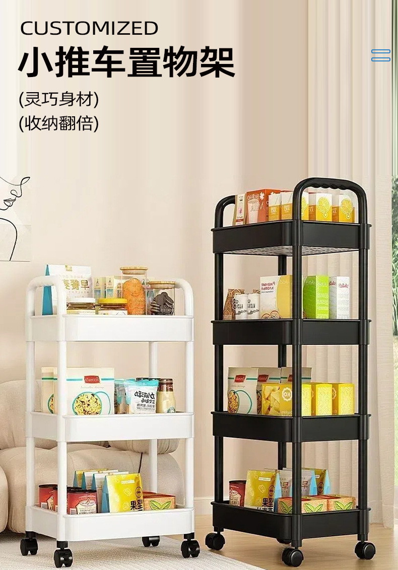 • 4단 이중 팔걸이 트롤리 수납선반 [블랙]