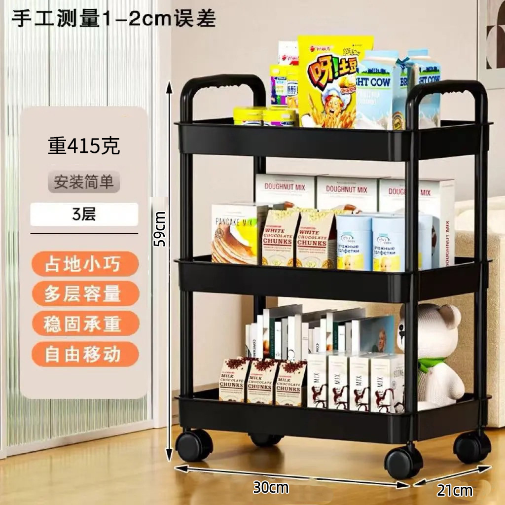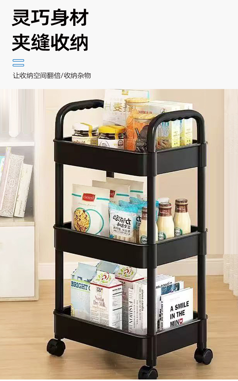• 3단 이중 팔걸이 트롤리 수납선반 [블랙]