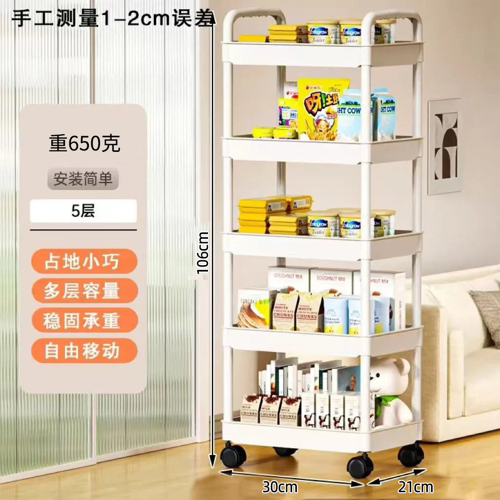 • 5단 이중 팔걸이 트롤리 수납선반 [화이트]