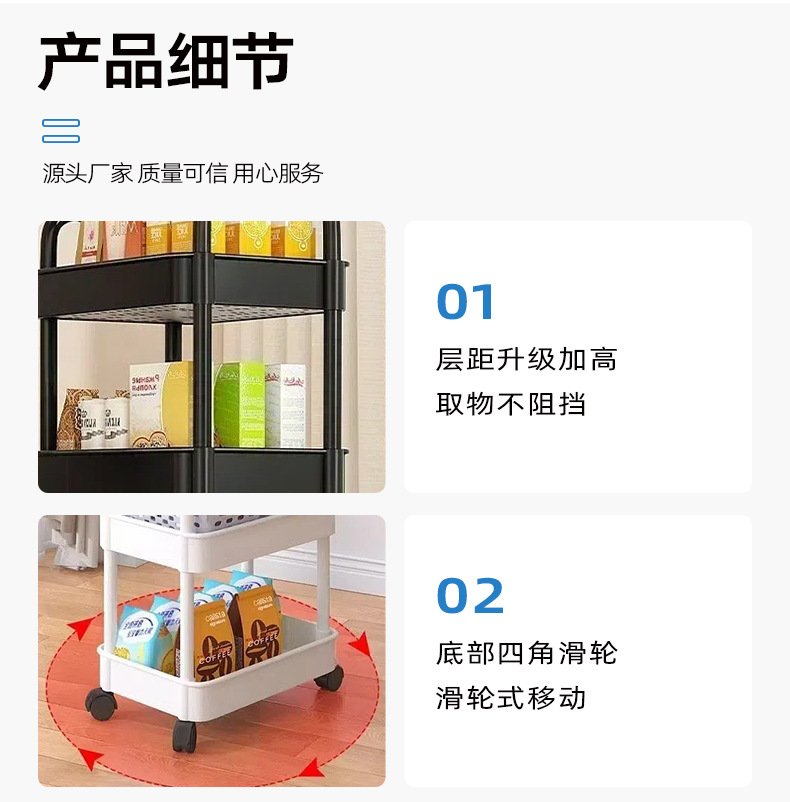 • 2층 이중 팔걸이 트롤리 수납선반 [블랙]