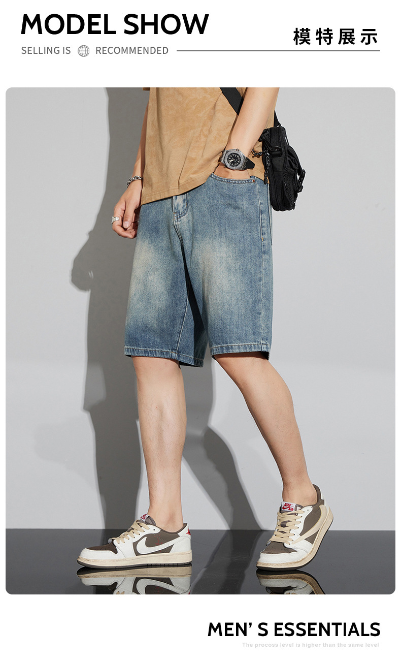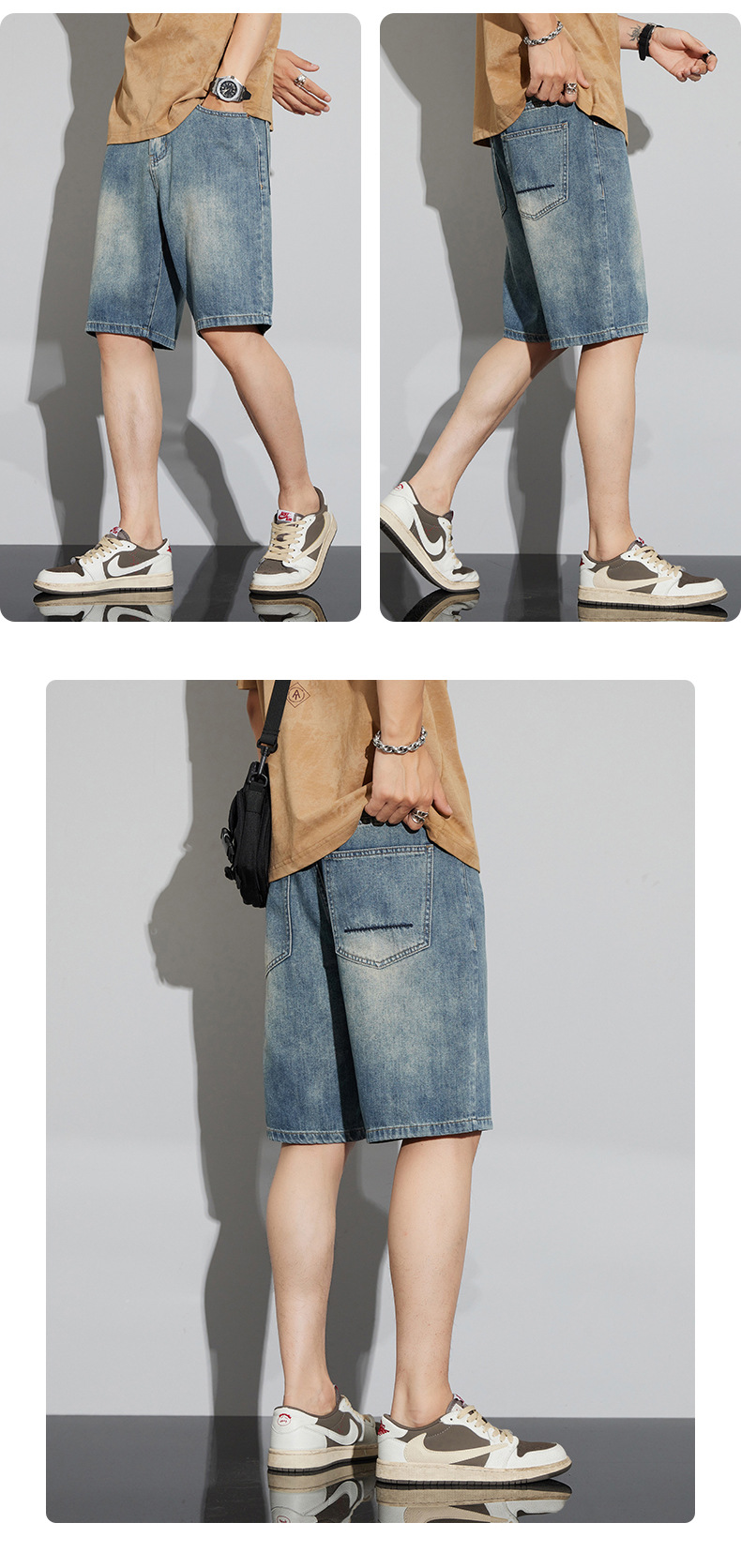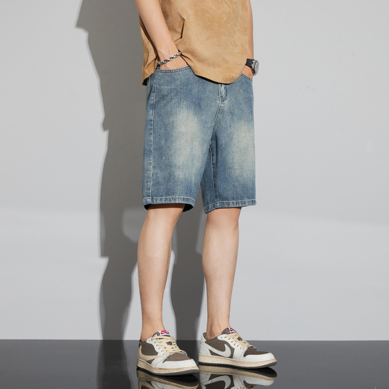 데님 반바지 남성 여름 패션 브랜드 반팔 남성 5 점 바지 남성 랩 의류 남성용 바지스토어 가기