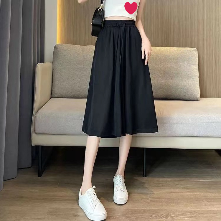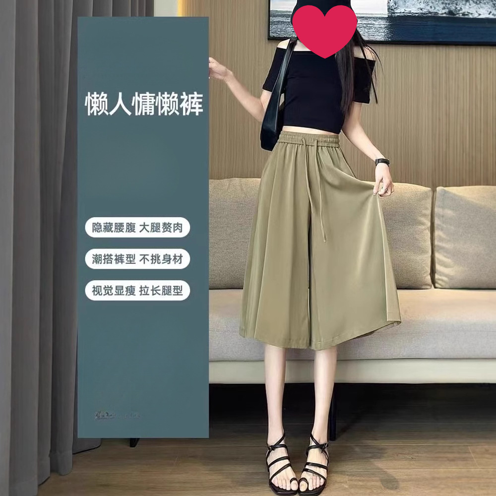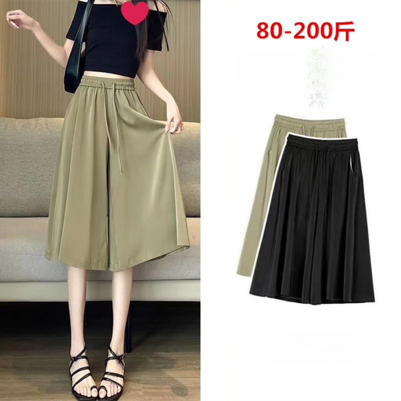 아이스 실크 카프리 바지 여자 2025 년 여름 신작 한국 스타일 높은 허리 얇은 슬리밍 넓은 다리 바지 느슨한 캐주얼 사이즈 바지스토어 가기