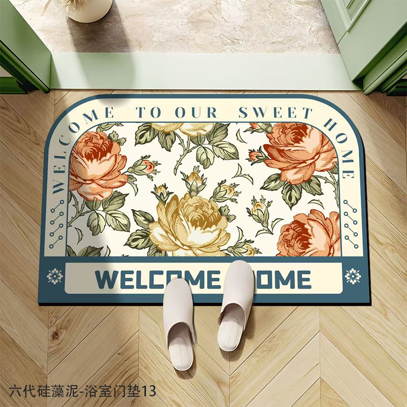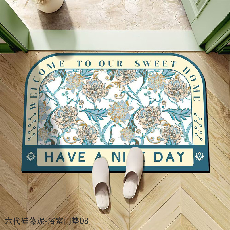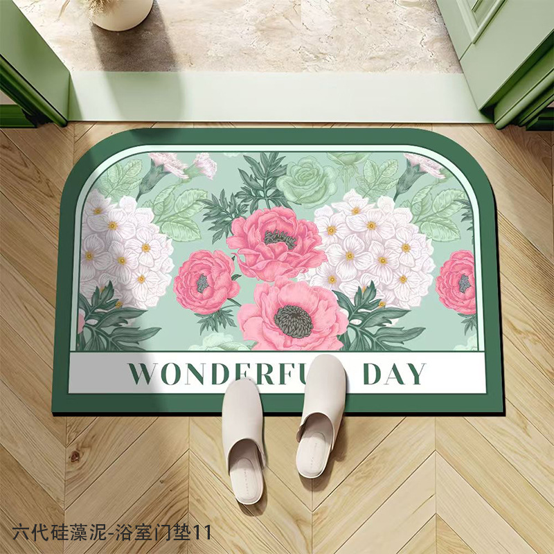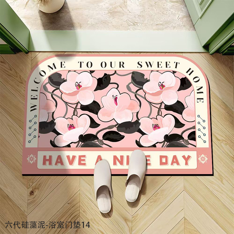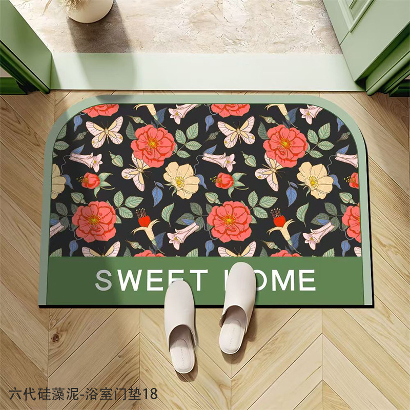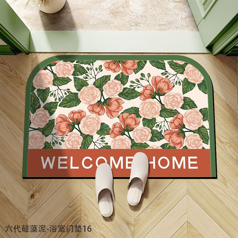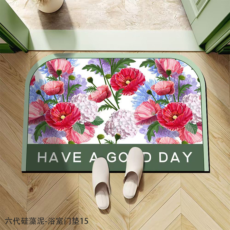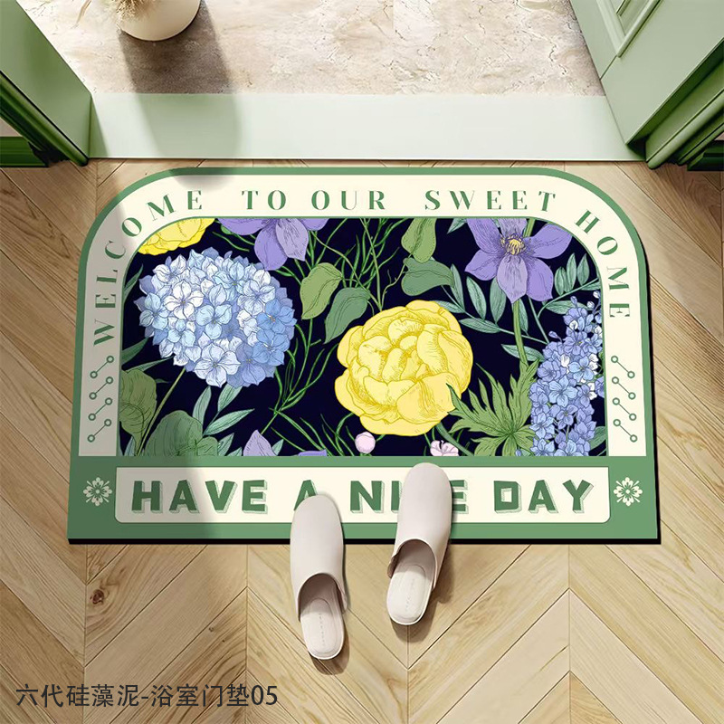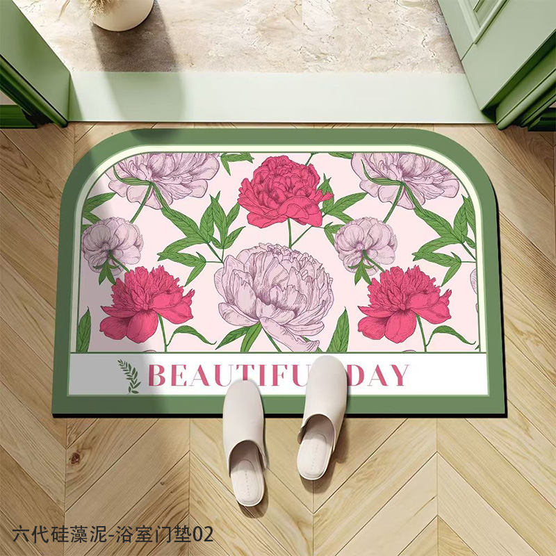 Diatom 진흙 화장실 욕실 미끄럼 방지 매트 현관 작은 향기로운 스타일의 꽃 패턴 바닥 매트 흡수성 도어 매트 관리