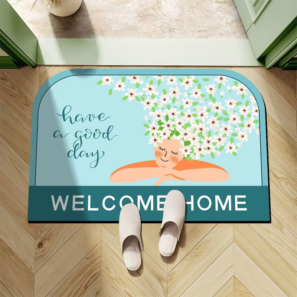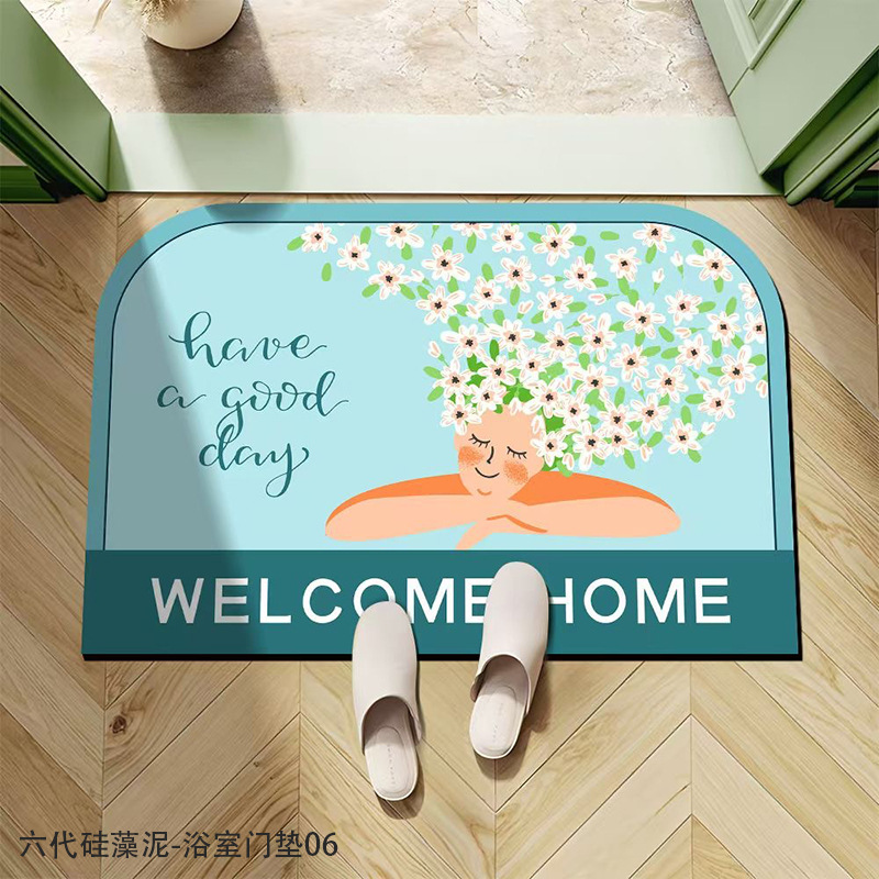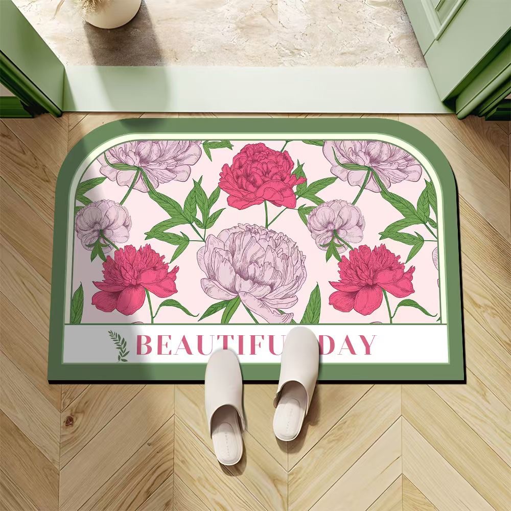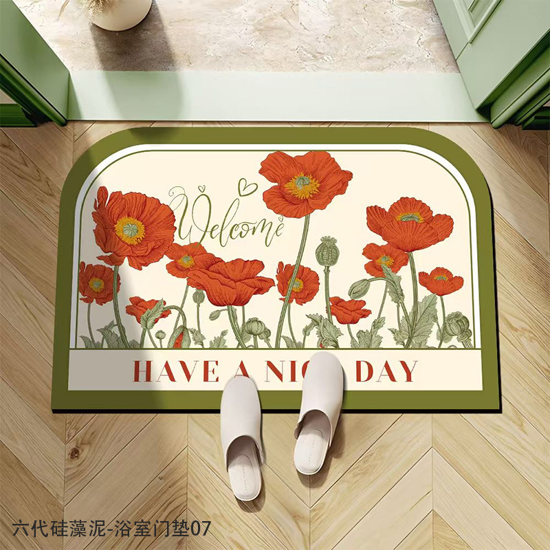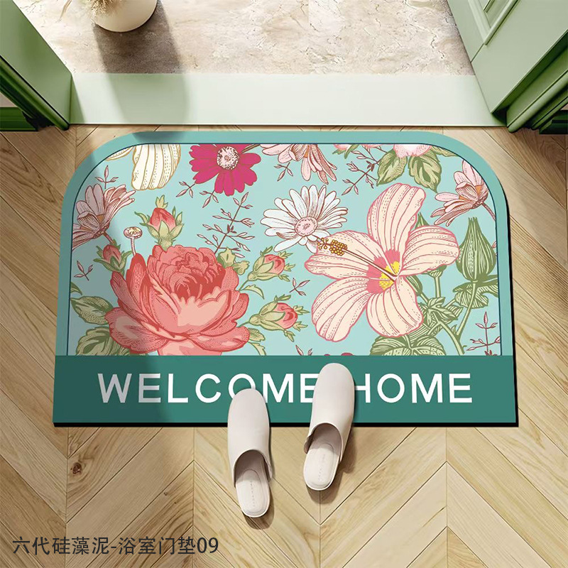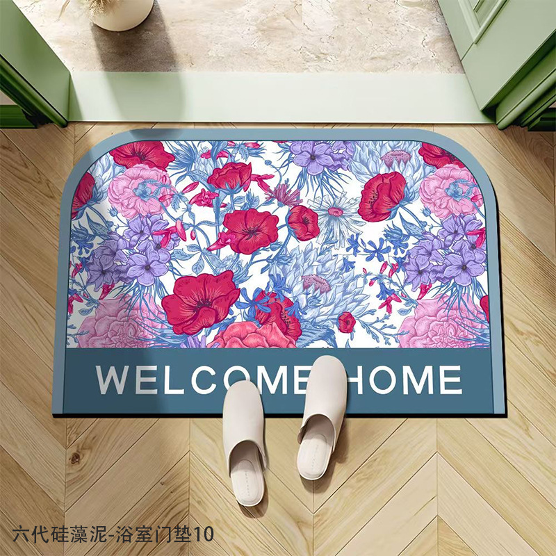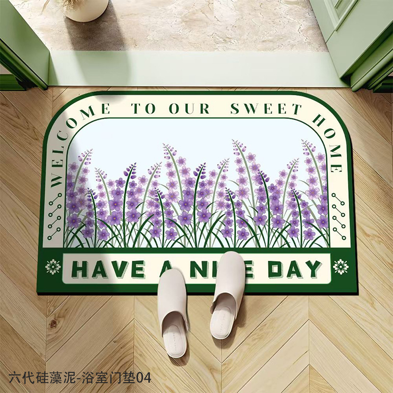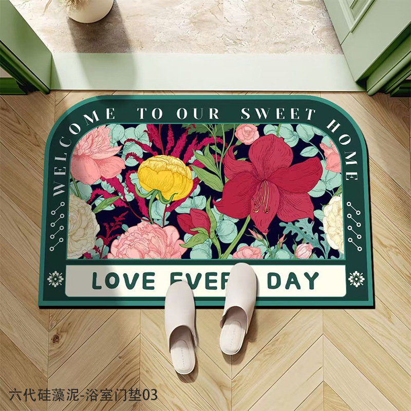 Diatom 진흙 화장실 욕실 미끄럼 방지 매트 현관 작은 향기로운 스타일의 꽃 패턴 바닥 매트 흡수성 도어 매트 관리
