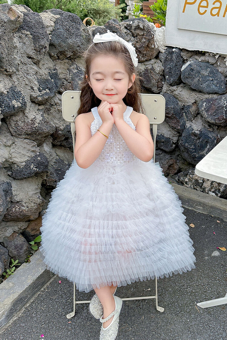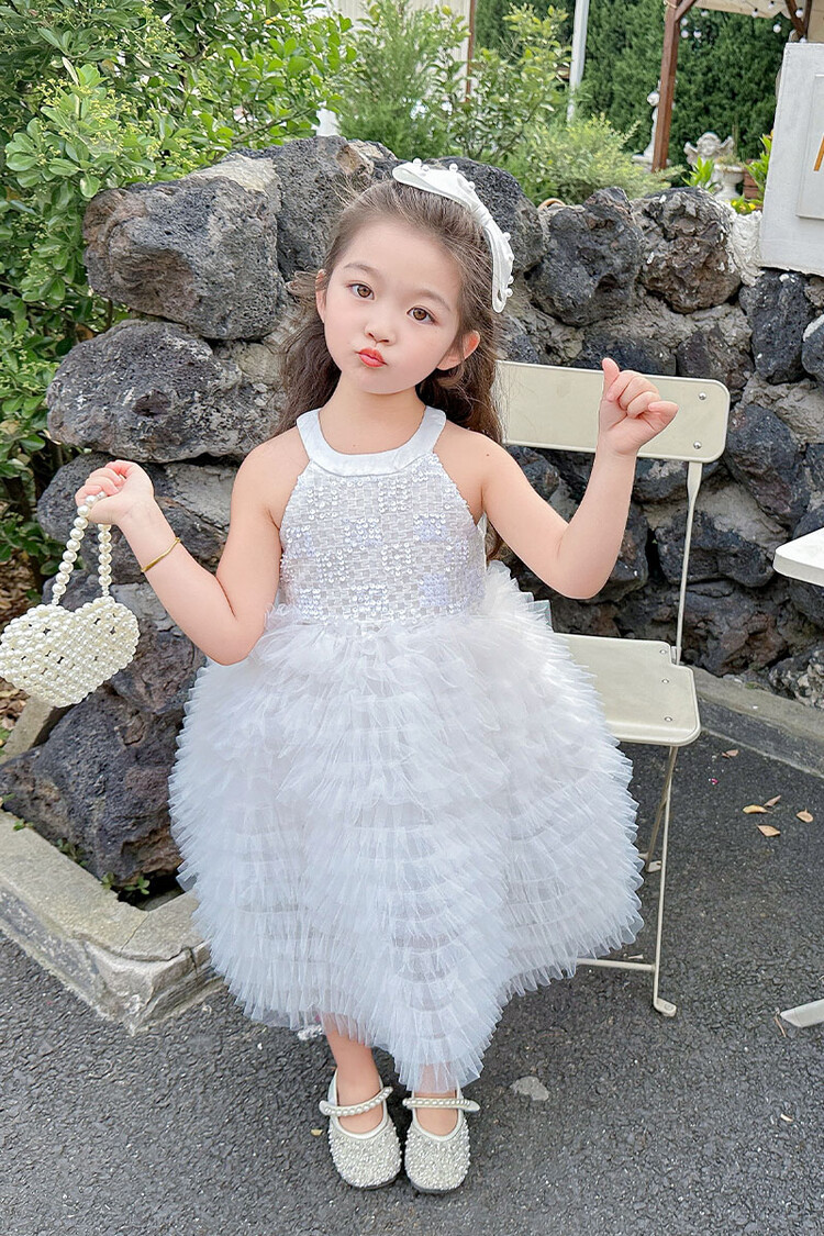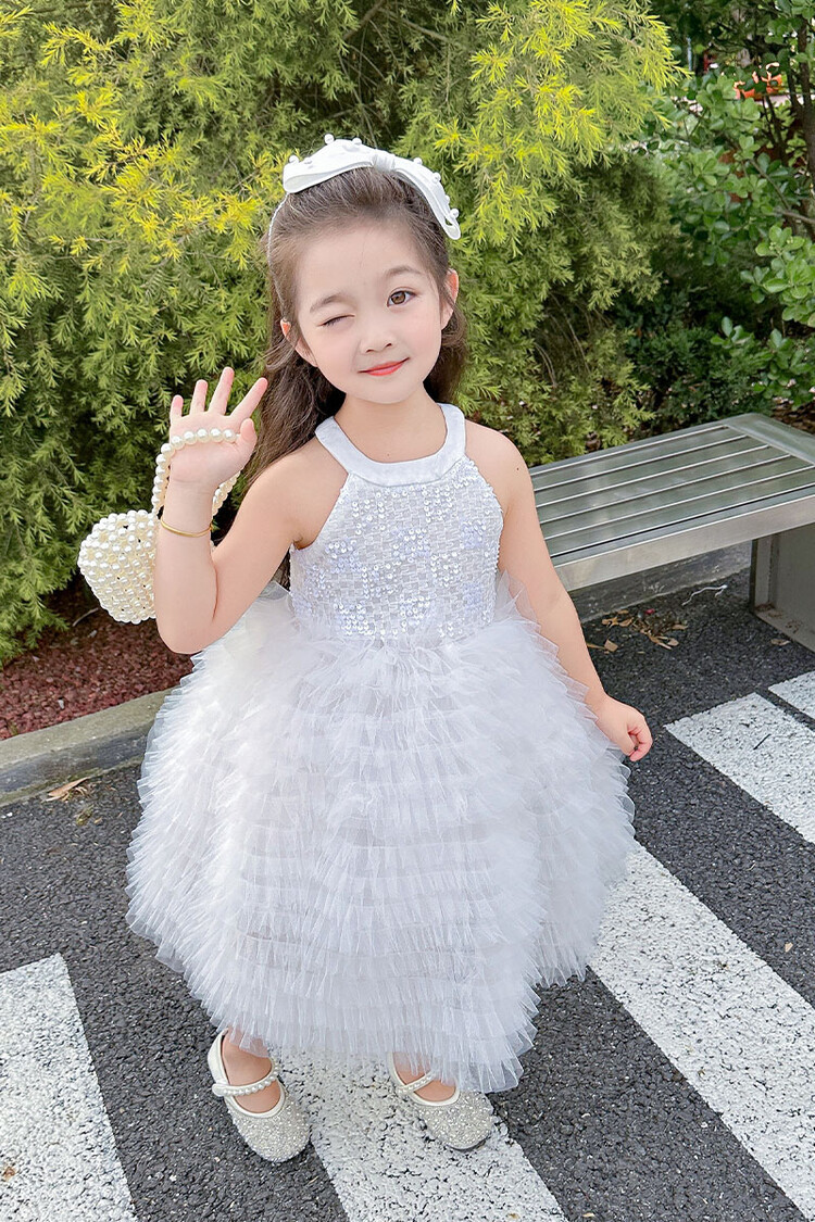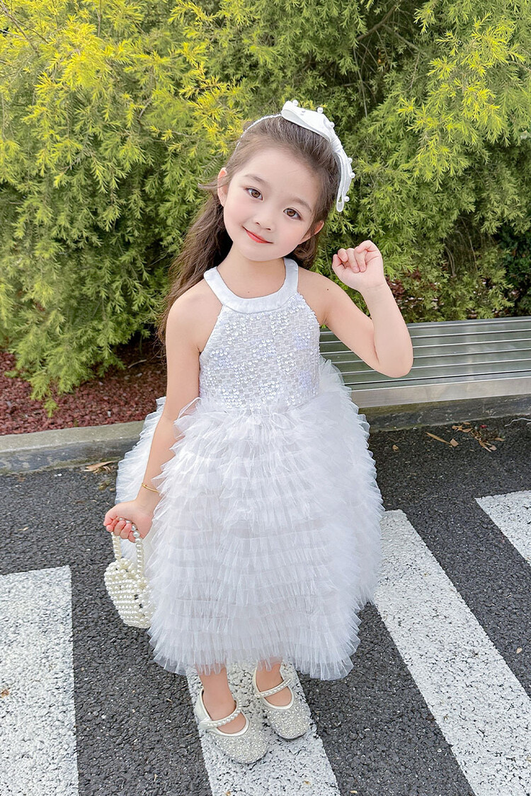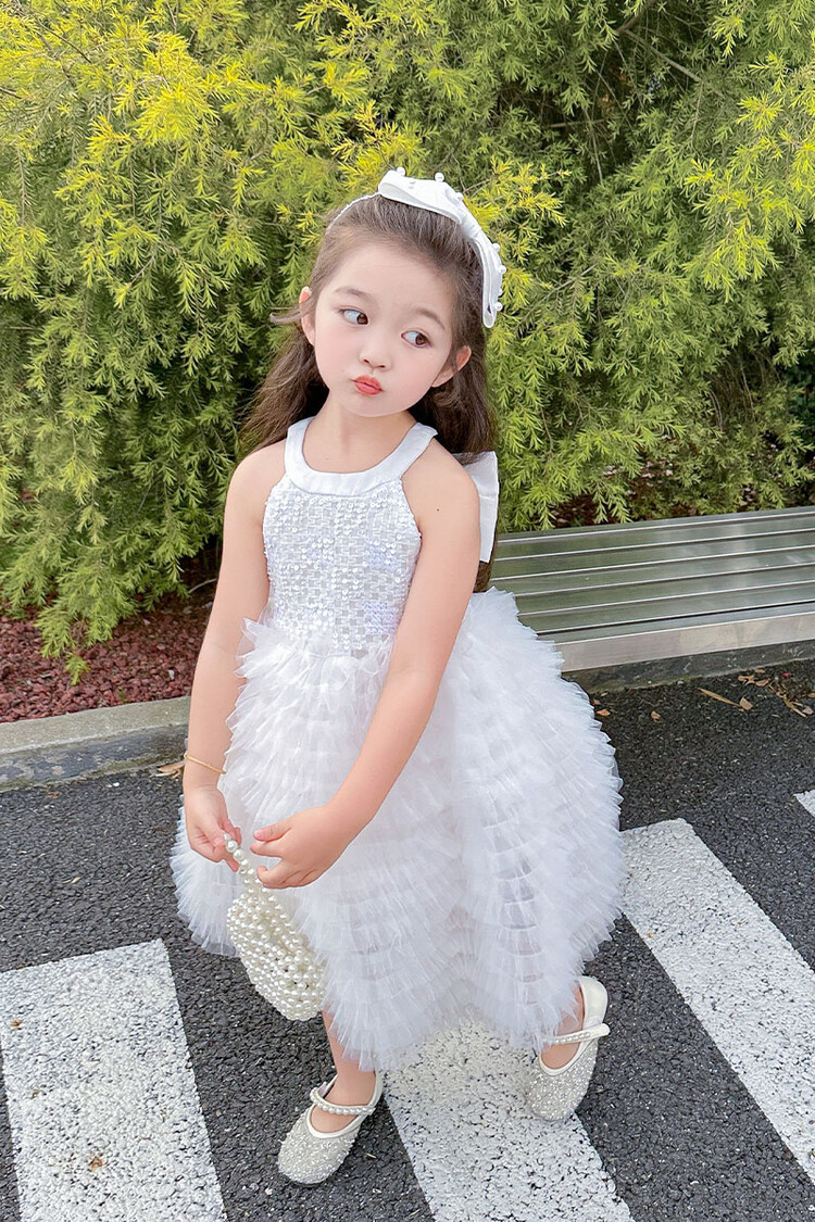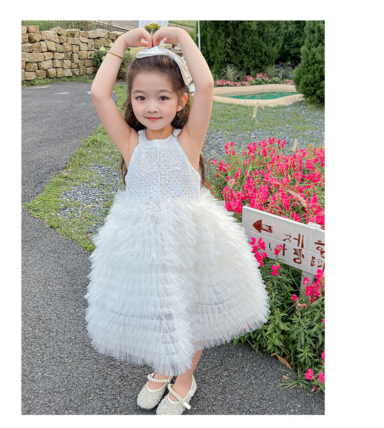 소녀 화이트 스완 원피스 하이 엔드 센스 세퀸 케이크 스커트 소녀 생일 공주 스커트 어린이 6 월 1 일 원피스스토어 가기