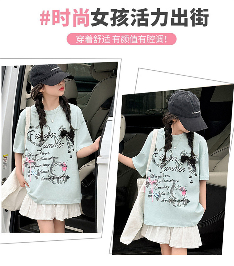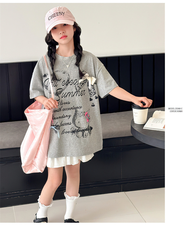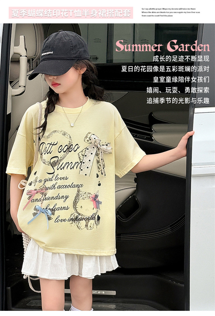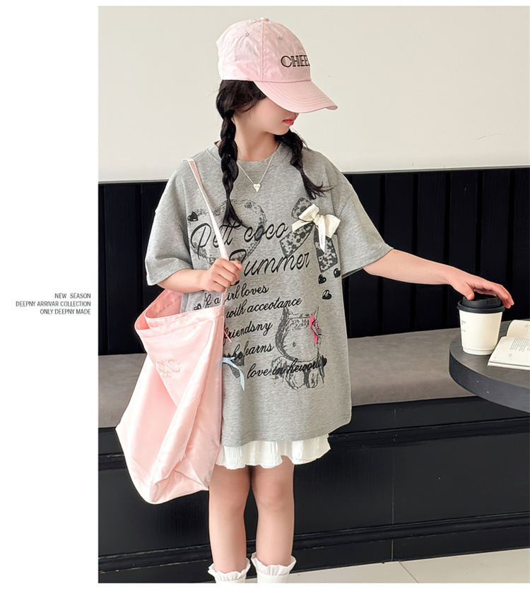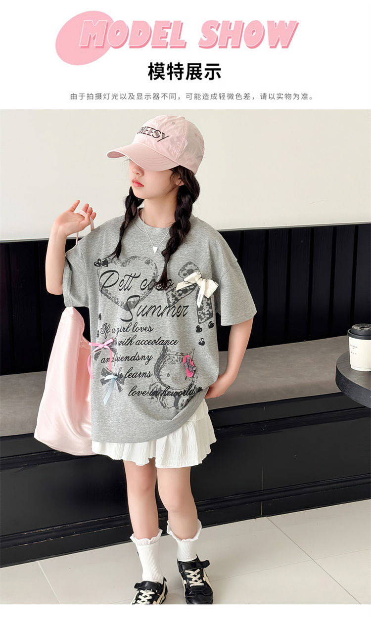 여자 여름 반팔 세트 2025 새로운 스타일 한국 스타일 소녀의 얇은 느슨한 케이크 스커트 세트스토어 가기