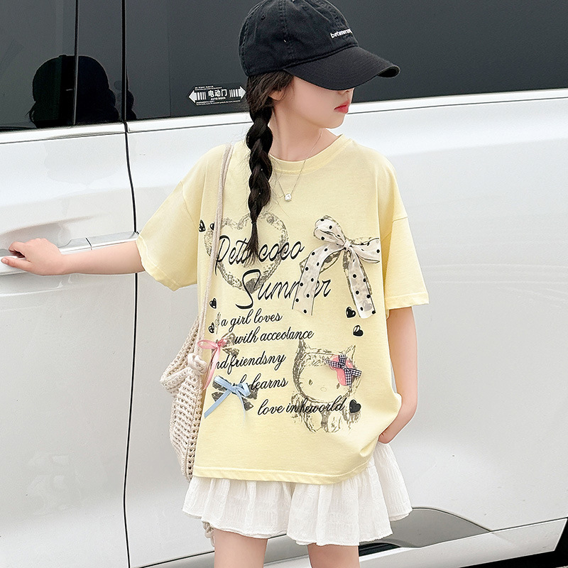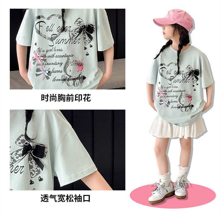 여자 여름 반팔 세트 2025 새로운 스타일 한국 스타일 소녀의 얇은 느슨한 케이크 스커트 세트