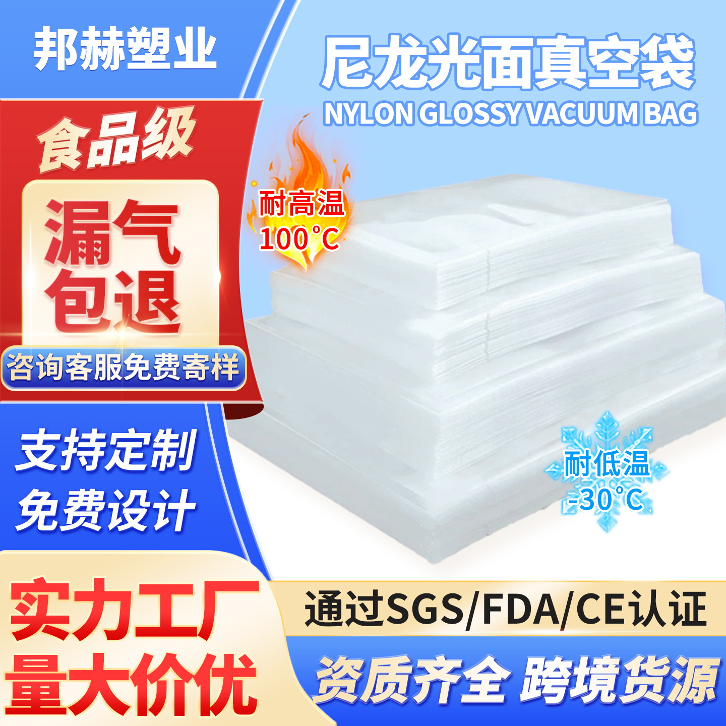 나일론 진공 가방 투명 플라스틱 포장 식품 진공 포장 가방 상업 요리 식품 진공 밀봉 가방 지원 인쇄