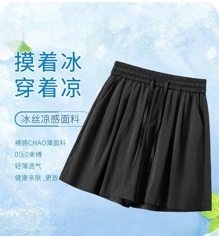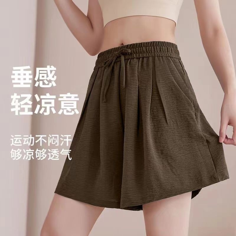 아이스 실크 반바지 여자 여름 의상 유행 새로운 올 매치 느슨한 바지 높은 허리 플러스 사이즈 넓은 다리 스포츠 문화