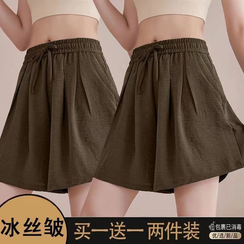 아이스 실크 반바지 여자 여름 의상 유행 새로운 올 매치 느슨한 바지 높은 허리 플러스 사이즈 넓은 다리 스포츠 문화스토어 가기