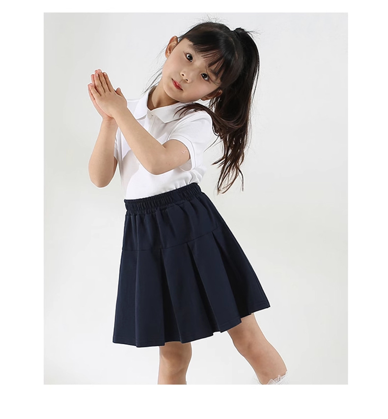여자 어린이 네이비 주름 치마 순수 면화 중대형 어린이 여름 짧은 치마 초등학생을위한 대학 스타일 반쪽 치마