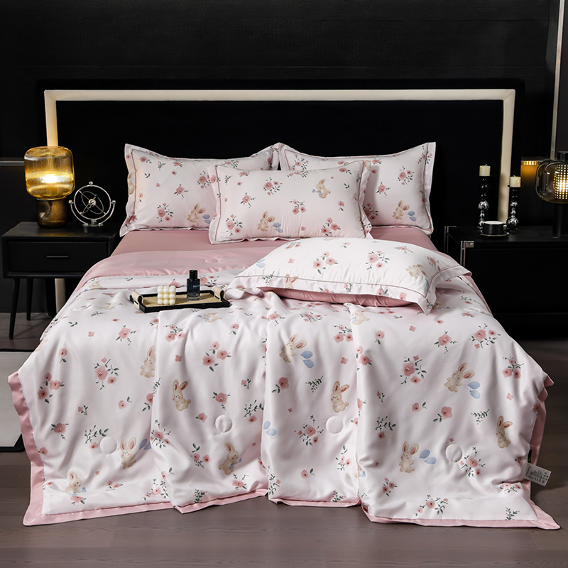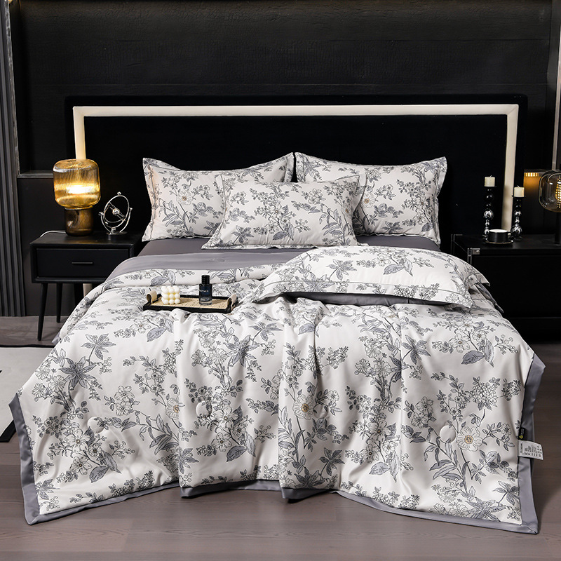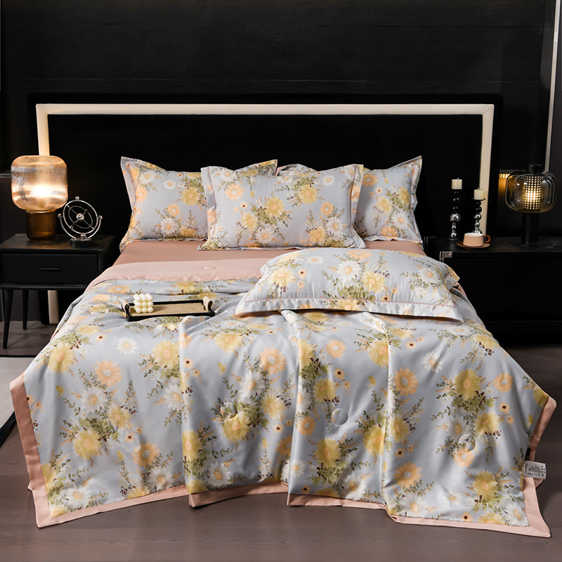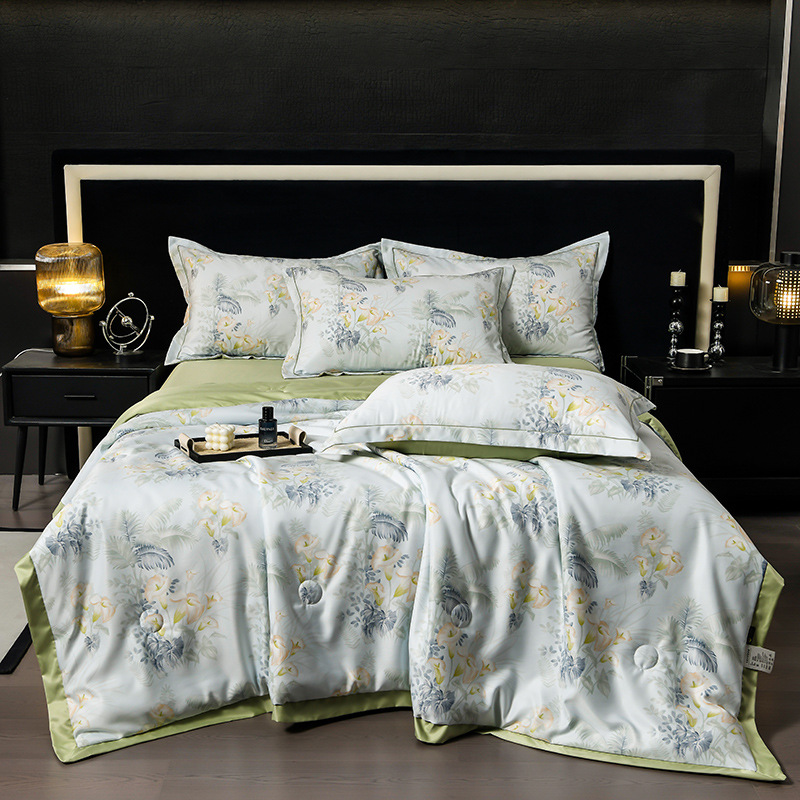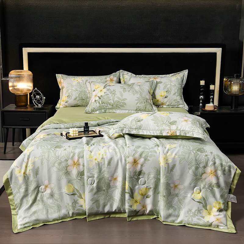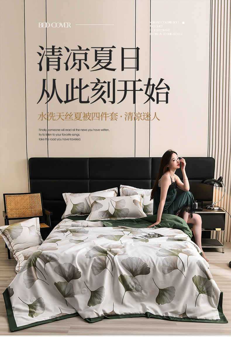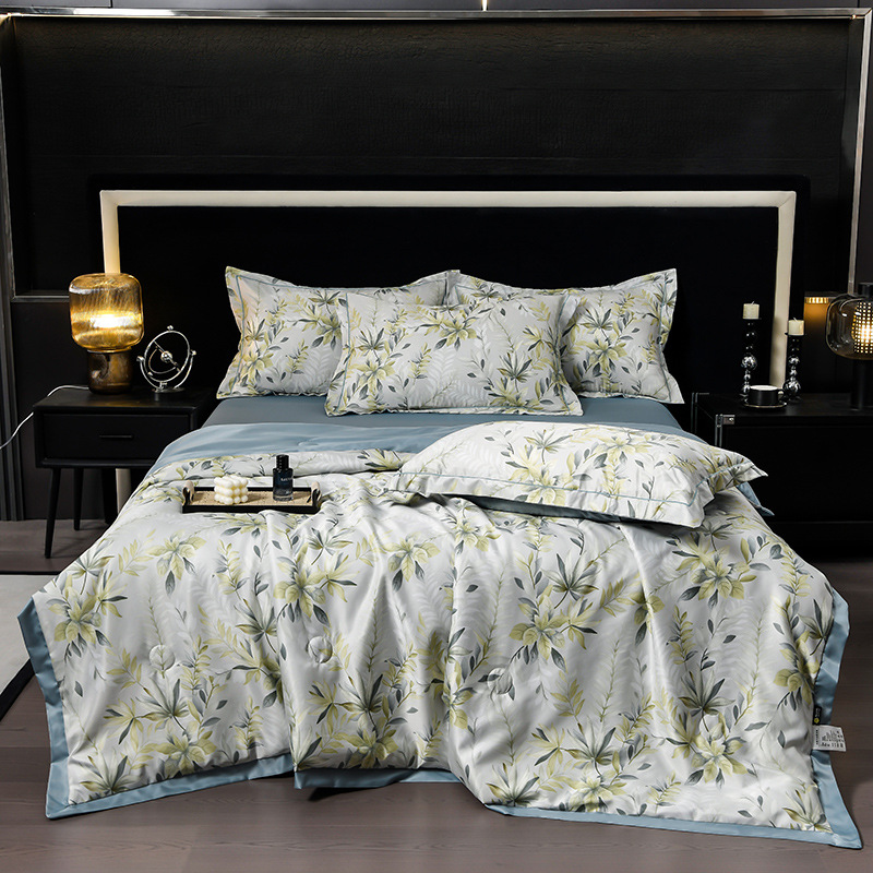 60수 텐셀 여름 이불 4피스 싱글 및 더블 아이스 실크 여름 시원한 이불 세탁 가능한 에어컨 이불 코어 여름 낮잠 얇은 이불스토어 가기