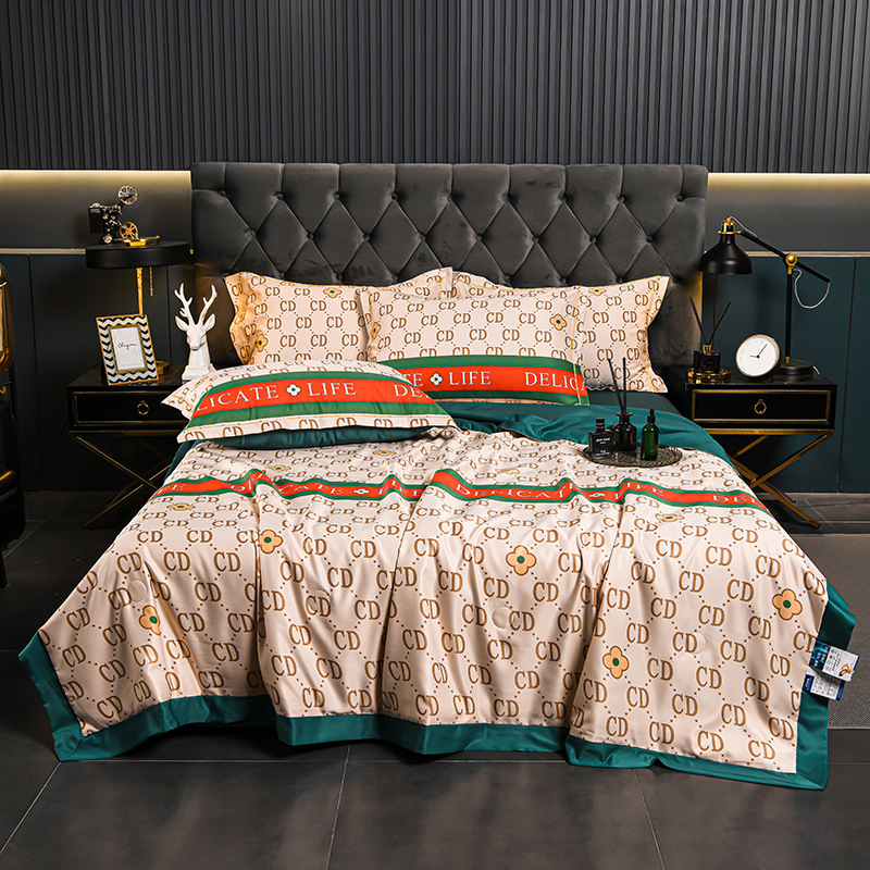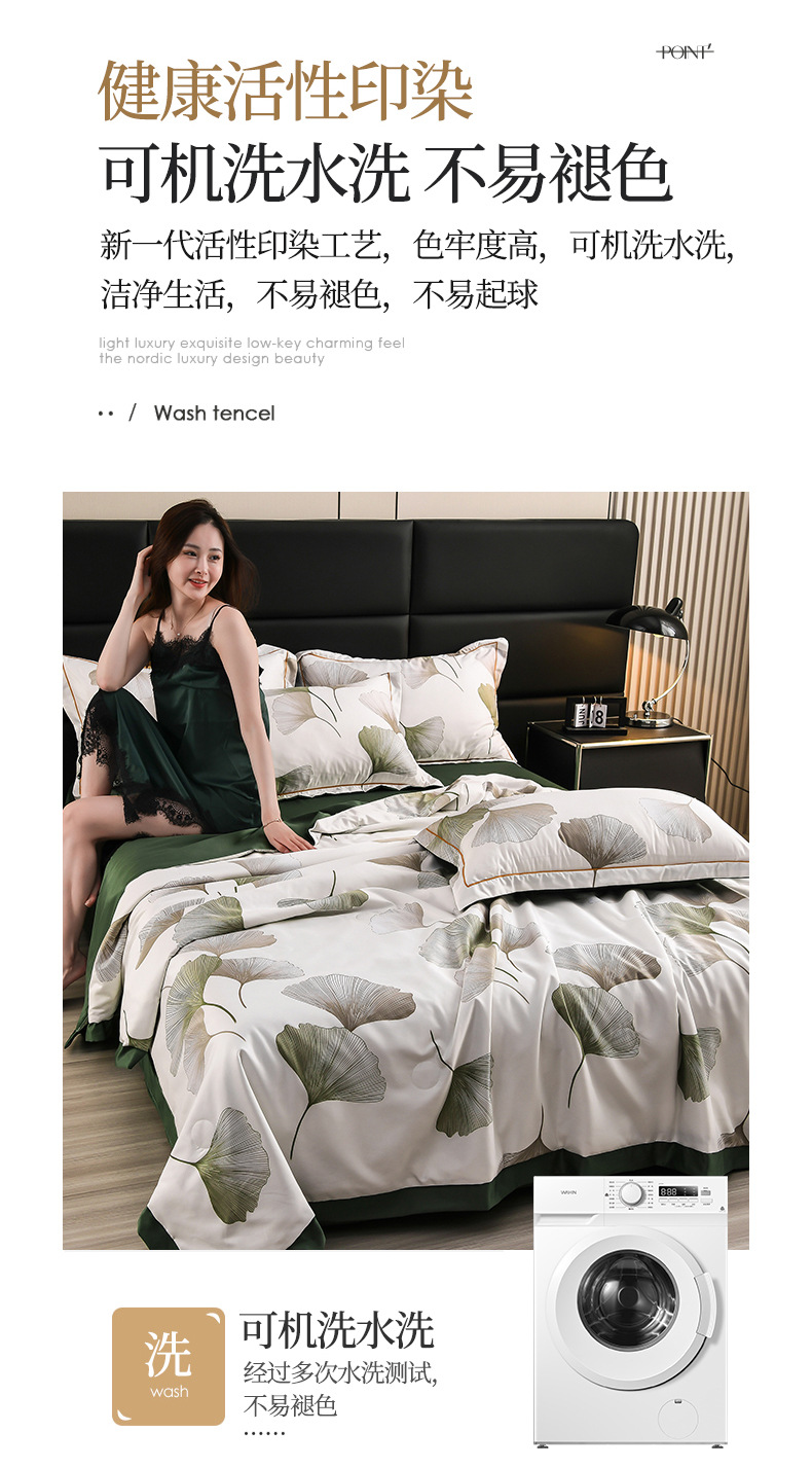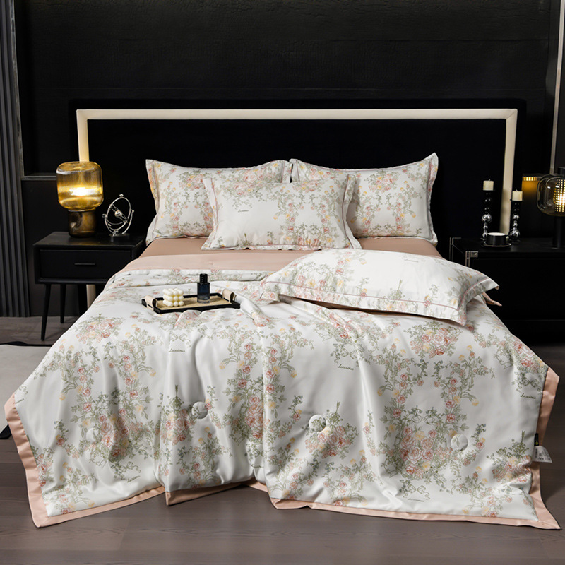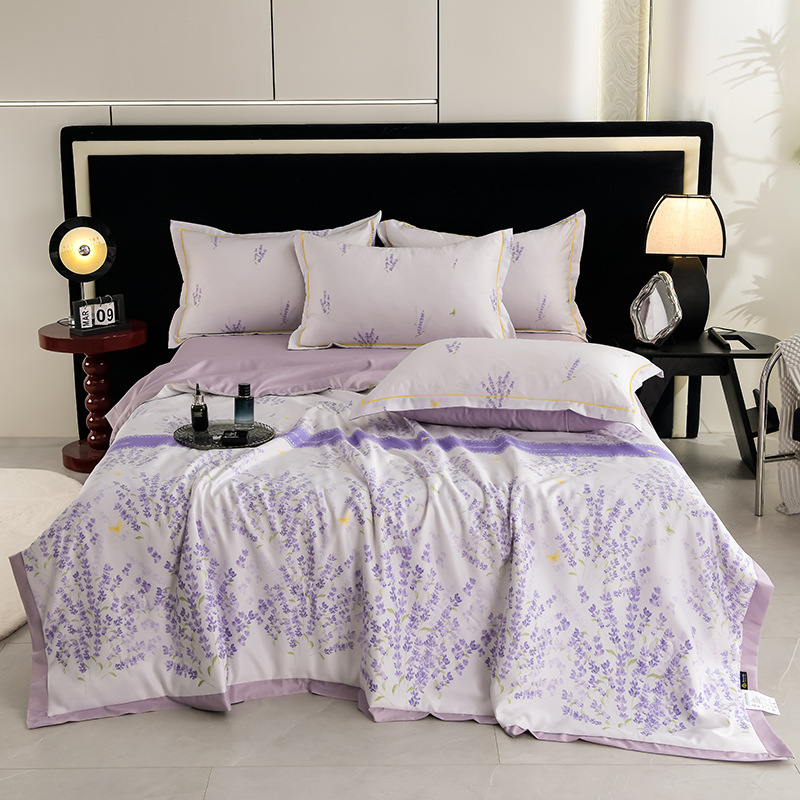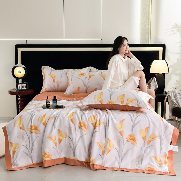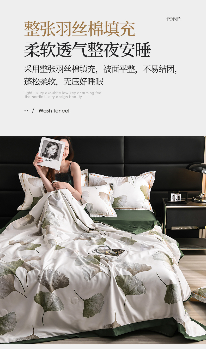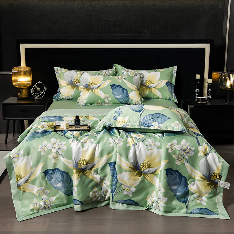 60수 텐셀 여름 이불 4피스 싱글 및 더블 아이스 실크 여름 시원한 이불 세탁 가능한 에어컨 이불 코어 여름 낮잠 얇은 이불스토어 가기