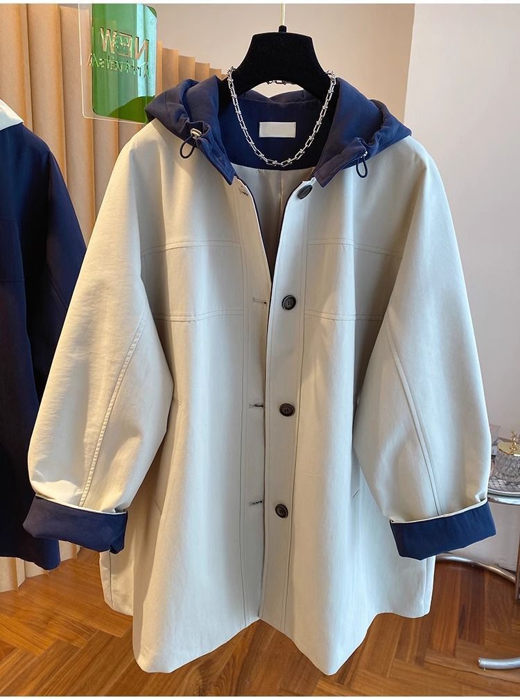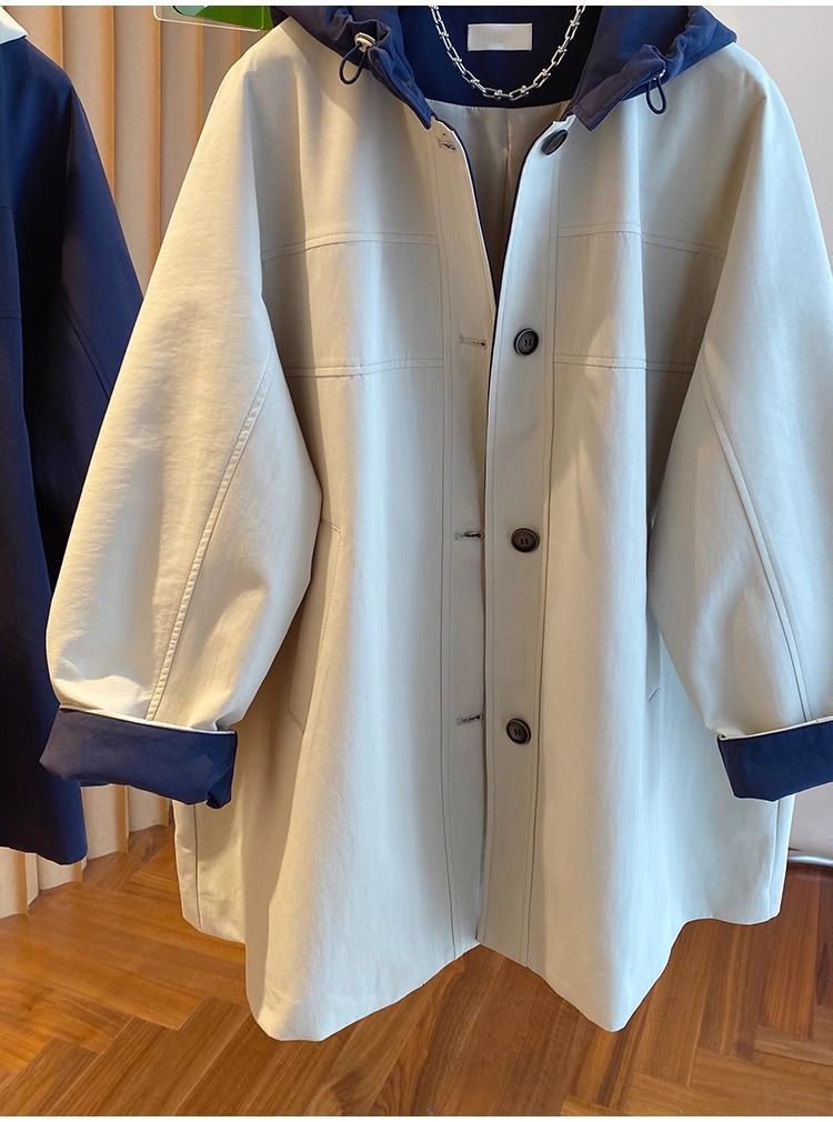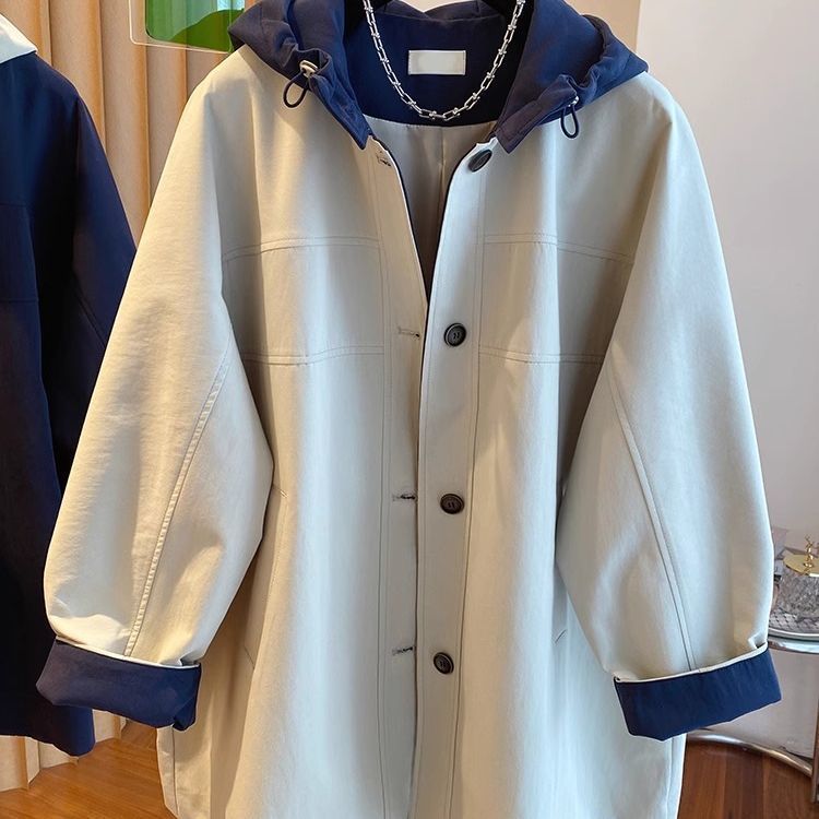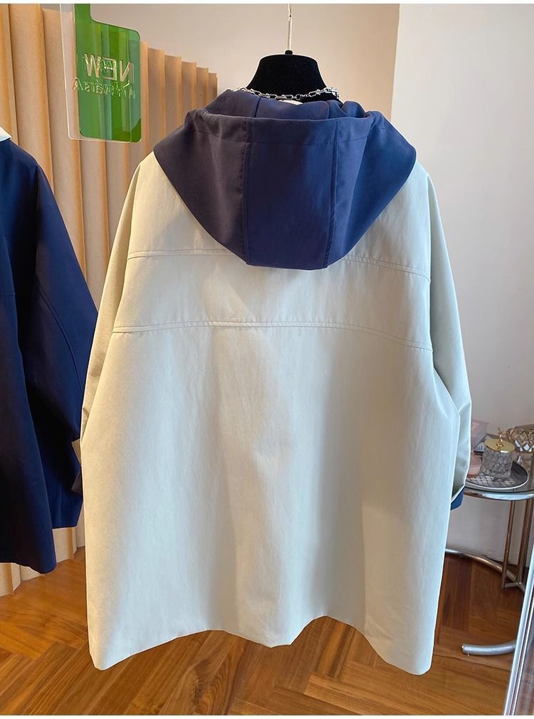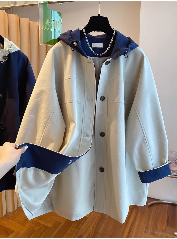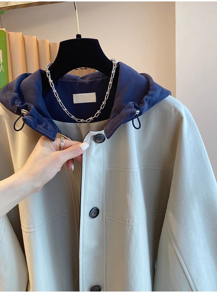 한국 대비 컬러 스티칭 후드 코트 여성 중장 2025 봄 새로운 느슨한 슬리밍 하이 엔드 패션 탑스토어 가기