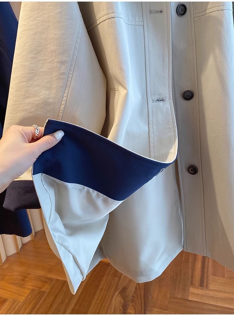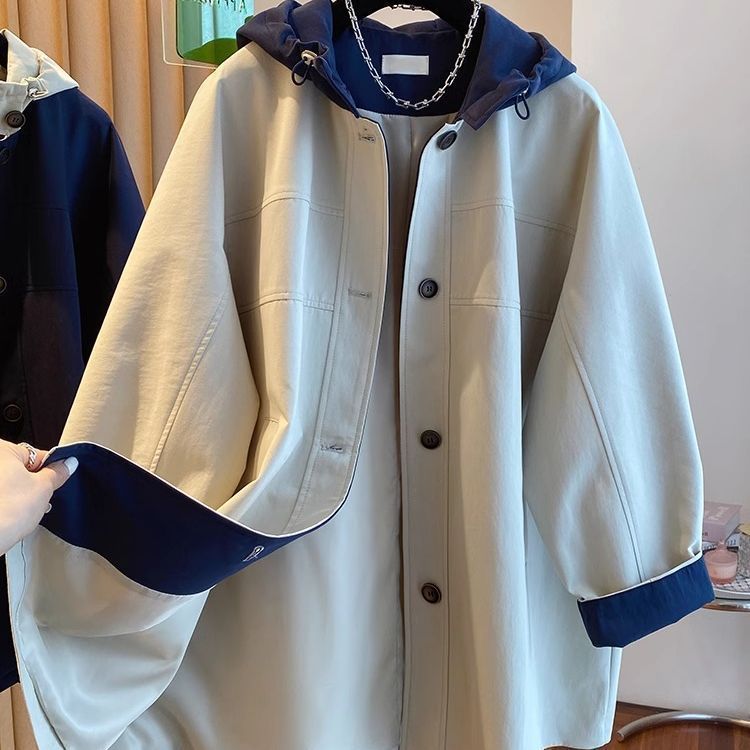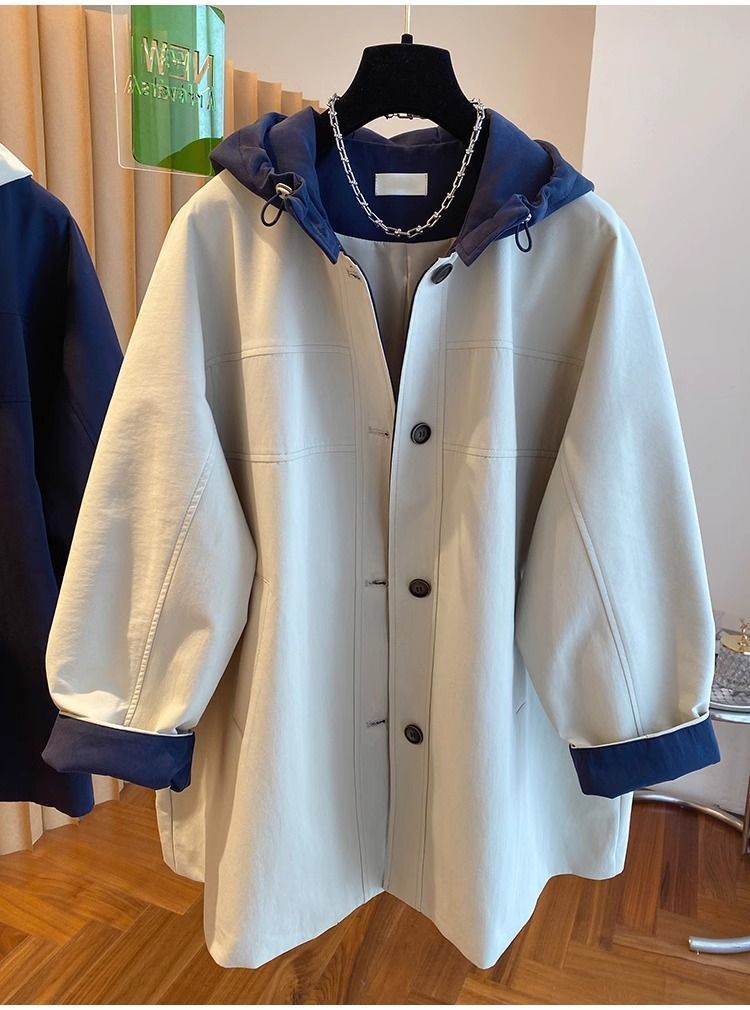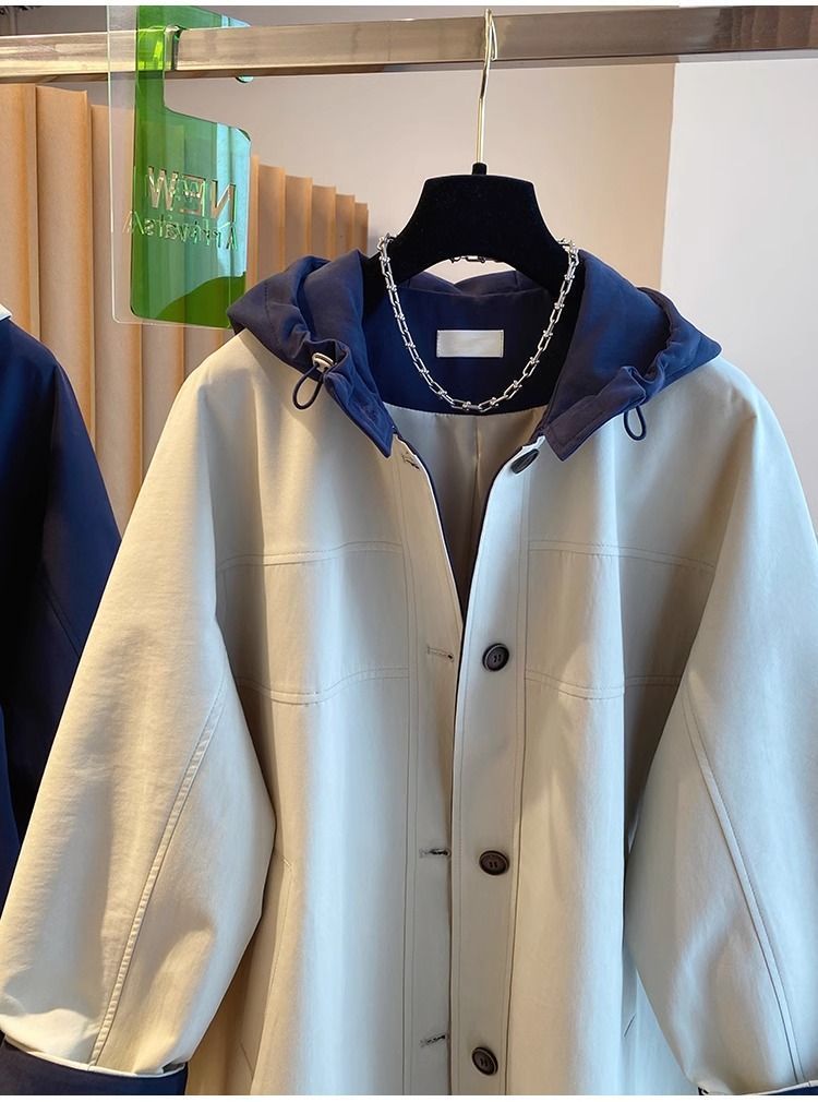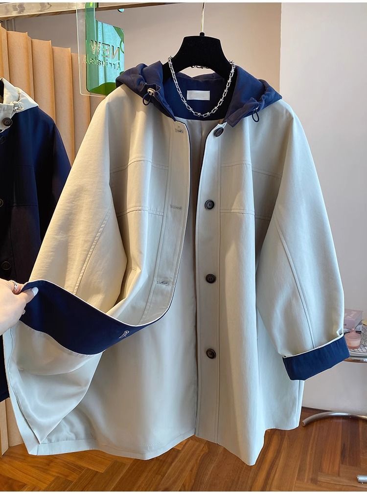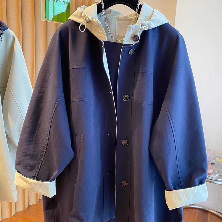 한국 대비 컬러 스티칭 후드 코트 여성 중장 2025 봄 새로운 느슨한 슬리밍 하이 엔드 패션 탑스토어 가기