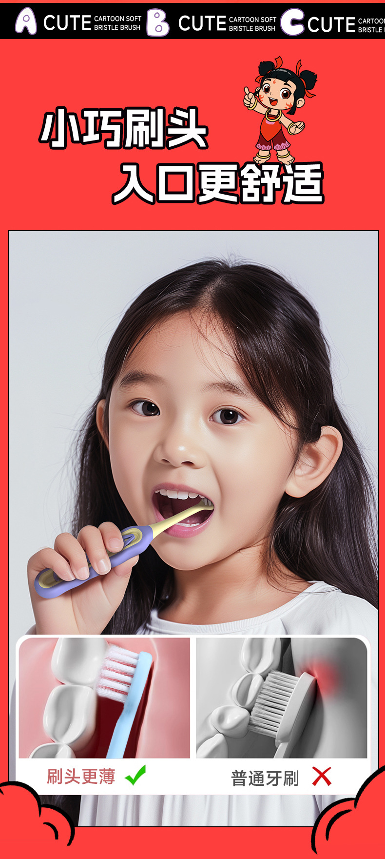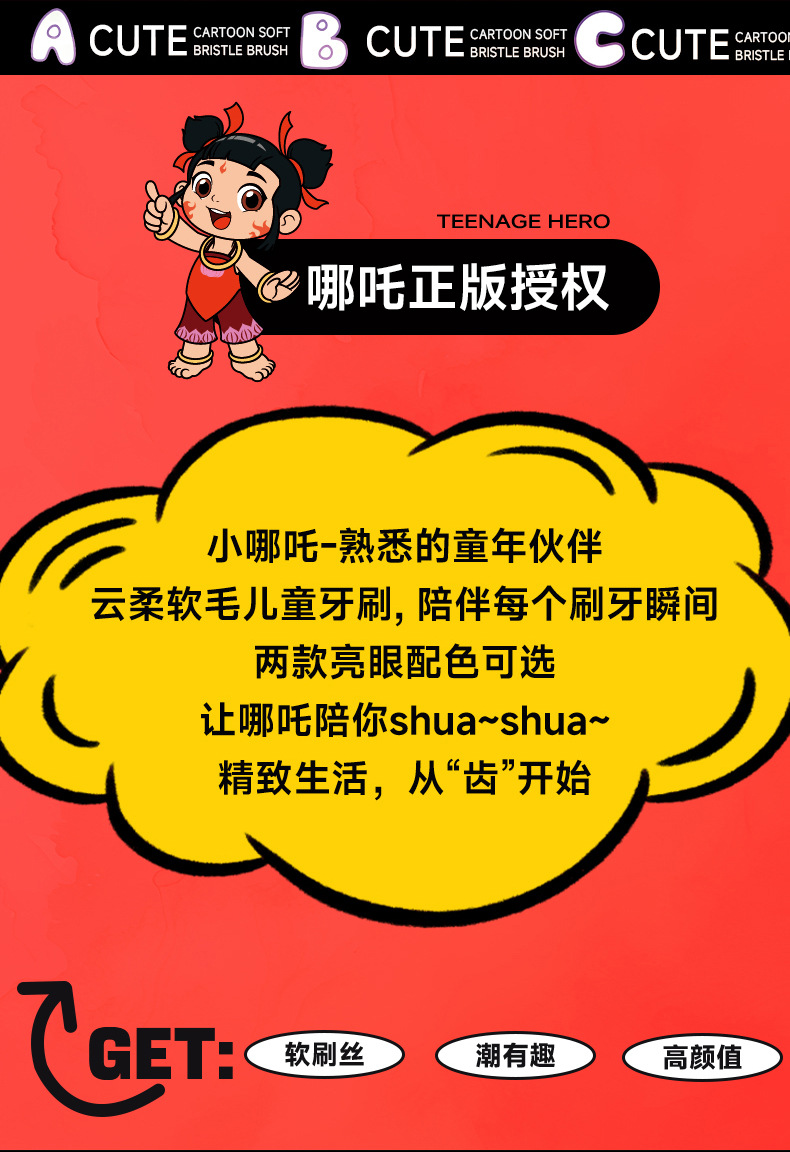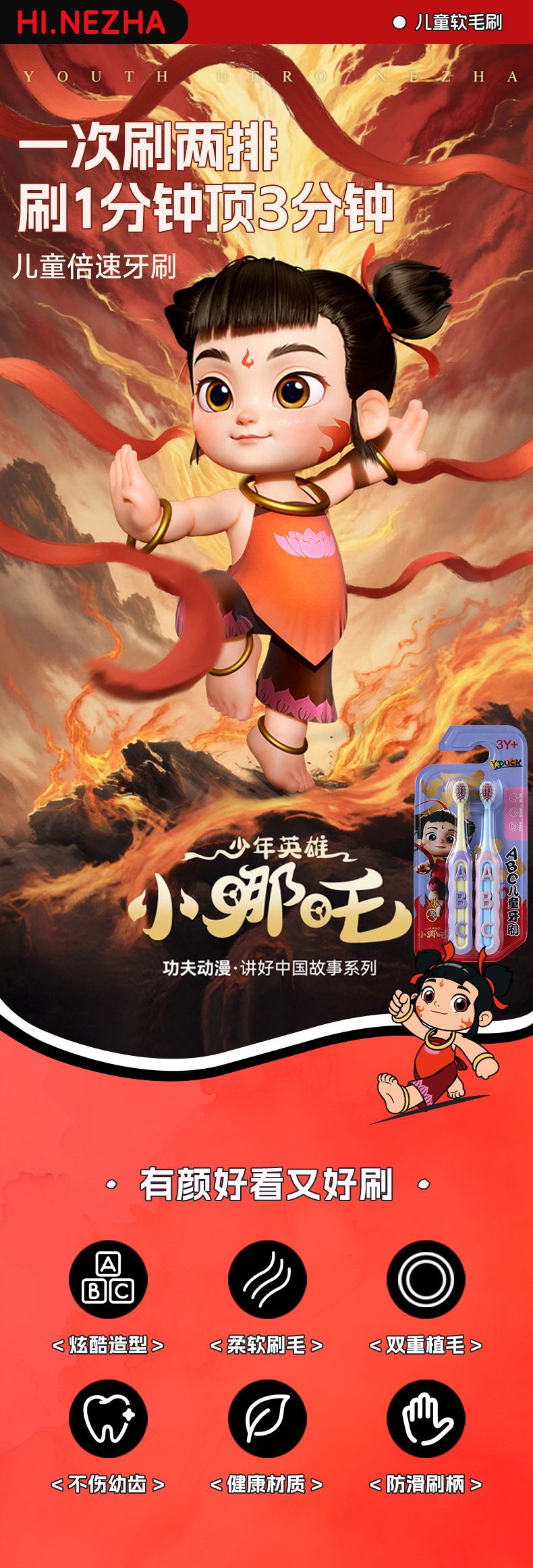 RAOYI Nezha 공동 어린이 칫솔 2 팩 3-12 세 높은 색상 가치 가정용 아기 부드러운 헤어 칫솔 재고스토어 가기