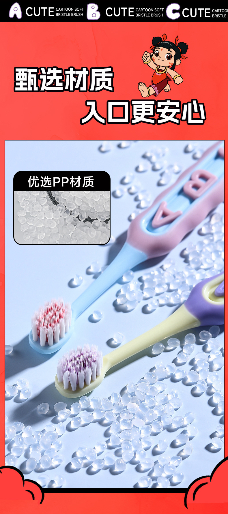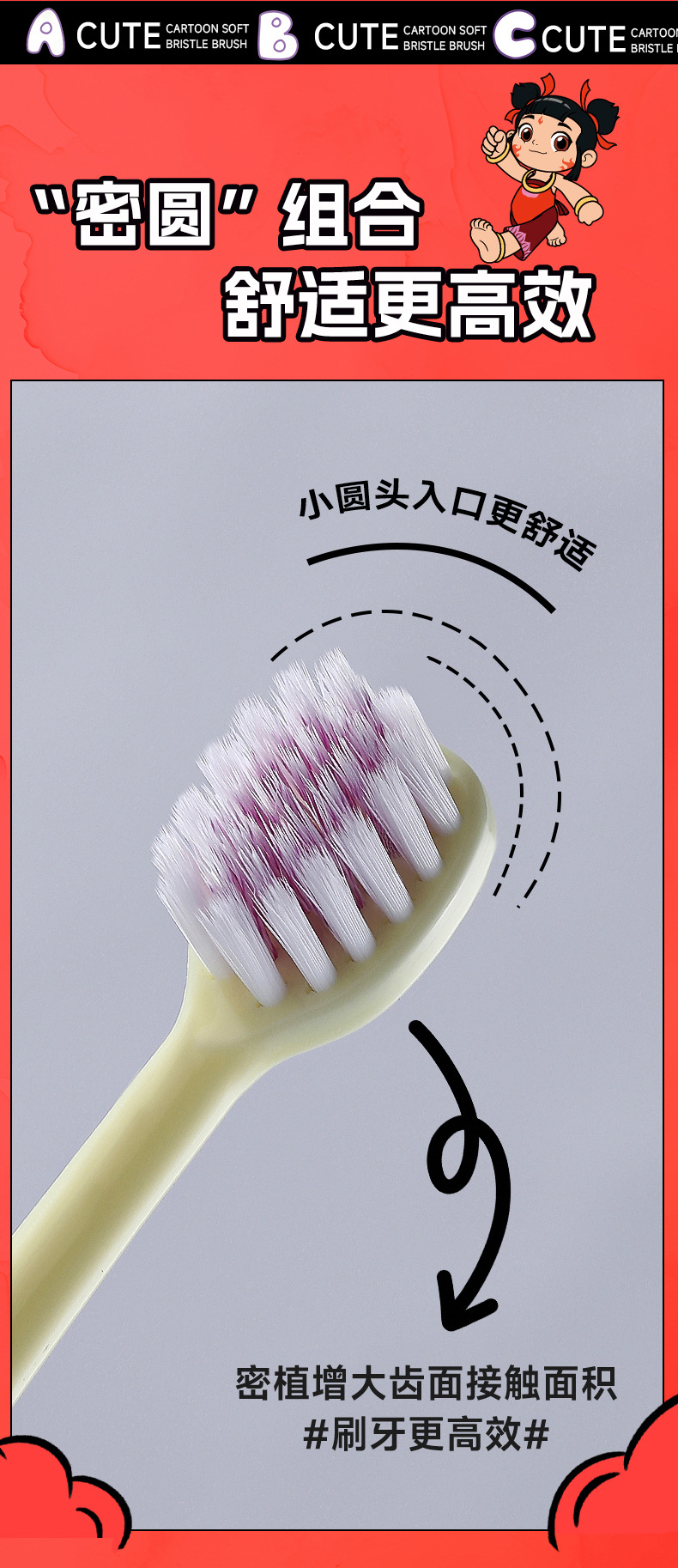 RAOYI Nezha 공동 어린이 칫솔 2 팩 3-12 세 높은 색상 가치 가정용 아기 부드러운 헤어 칫솔 재고