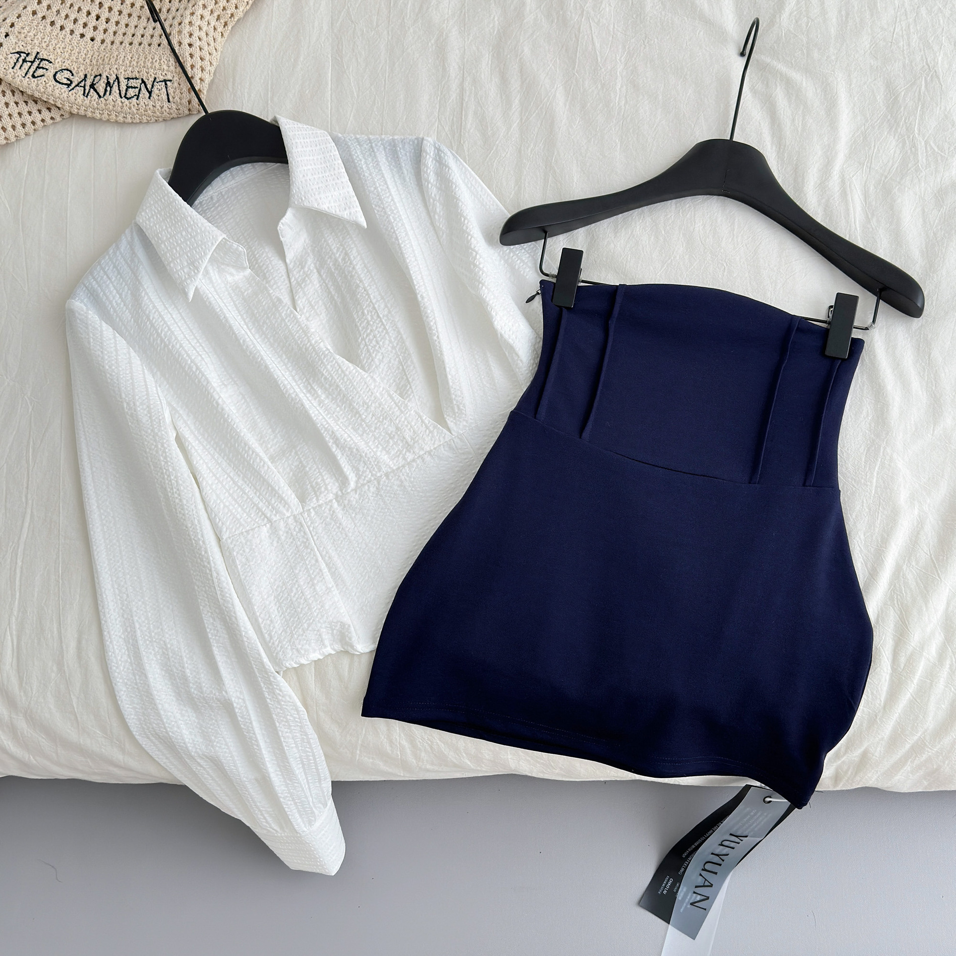 유지 직장 사이렌 스타일 화이트 셔츠 여성용 긴팔 슬림 핏 탑 힙합 스커트 세트스토어 가기