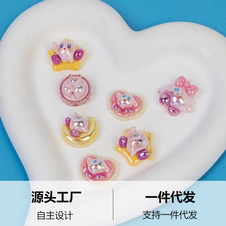 Mapei 전기 도금 스루홀 수지 액세서리 작은 만화 커비 스루홀 루즈 비즈 수제 diy 휴대 전화 체인 액세서리스토어 가기
