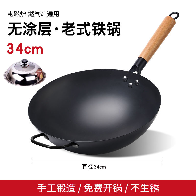 Daifa Zhangqiu 전통적인 구식 Iron Wok Wok 가정용 비코팅 비 스틱 Wok for Gas Stove Special Iron Wok
