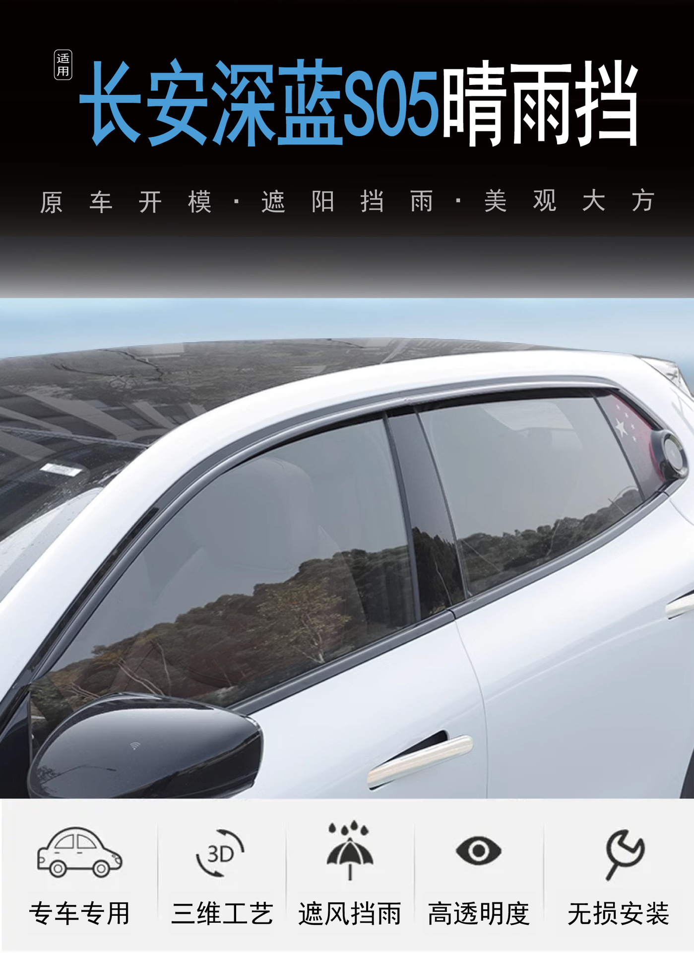 2023-2025년형 신형 창안 딥알 딥블루 S05 차량용 무테 자동차 창문 비가림막 (햇빛 가리개)