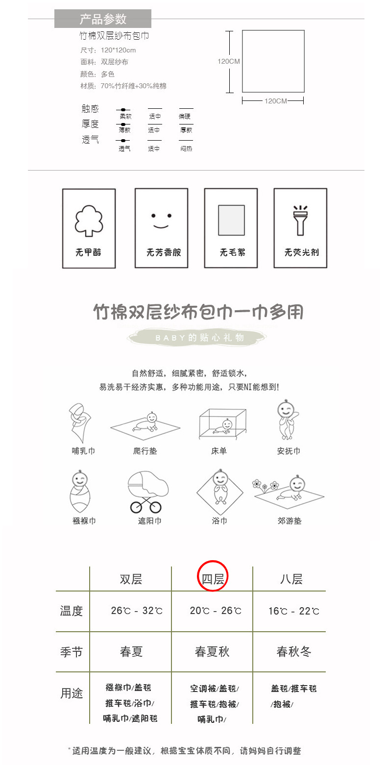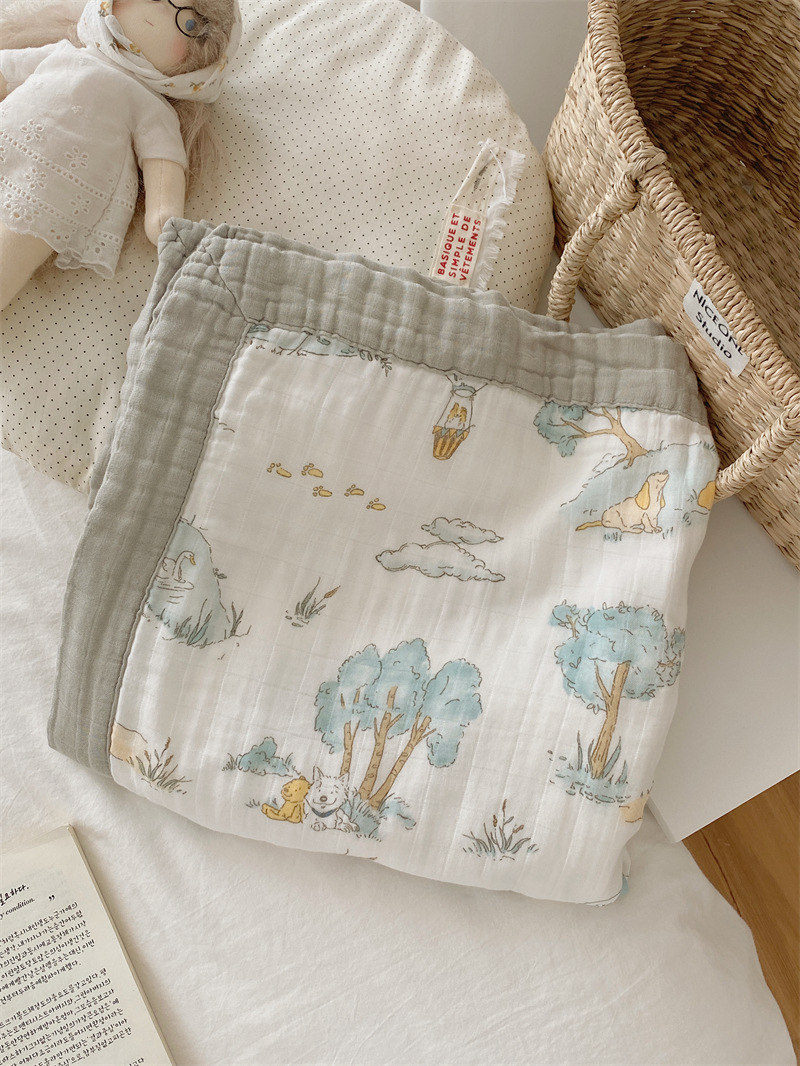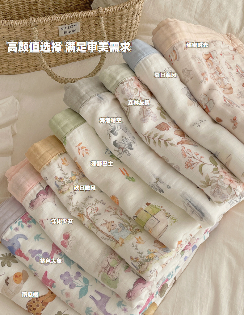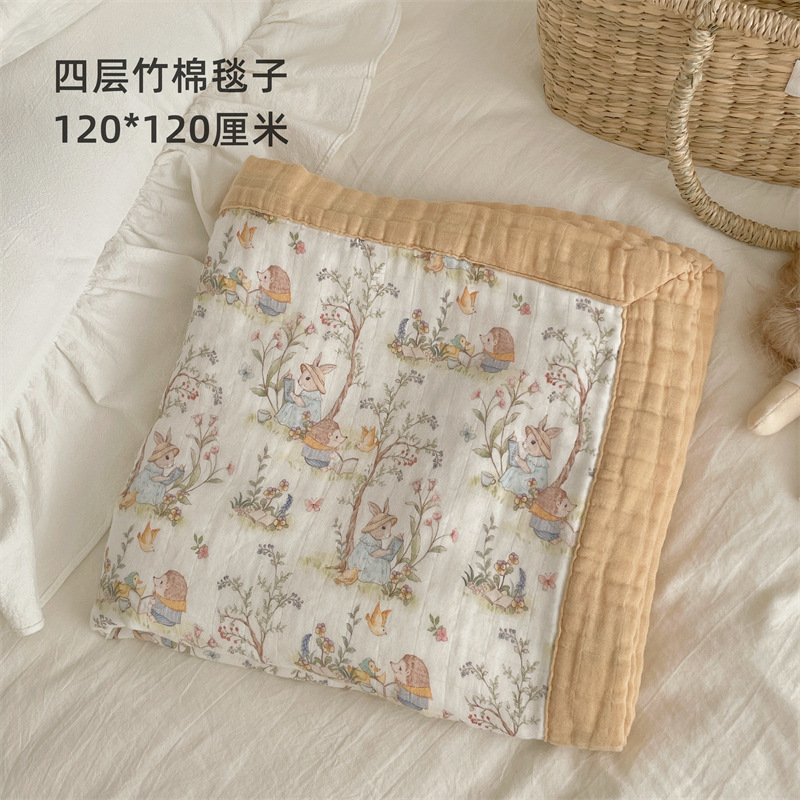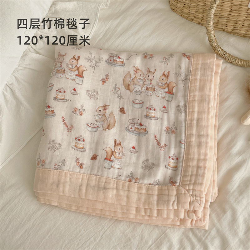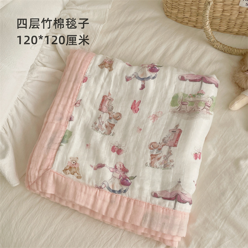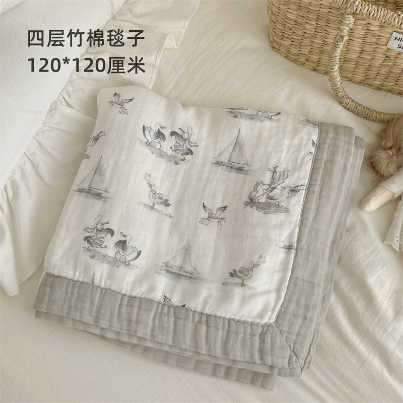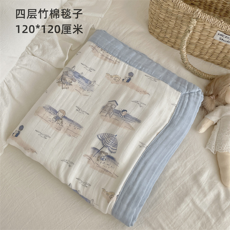 사계절을위한 대나무 코튼 거즈 와이드 사이드 에어컨 담요 유니버설 통기성 신생아 Swaddling 천 목욕 타월 4 층 담요스토어 가기