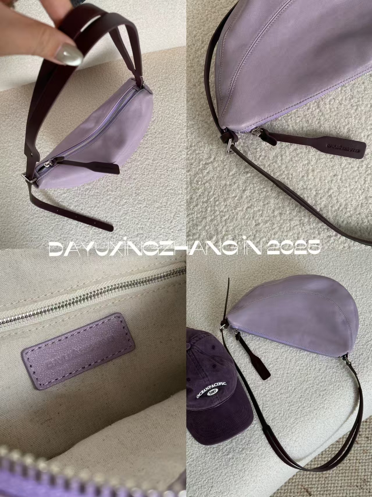 대우의 성 Zhang Xiaozhong 디자인 보라색 매화 안장 가방 어깨 크로스 바디 핸드백 Niujiao 만두 백스토어 가기