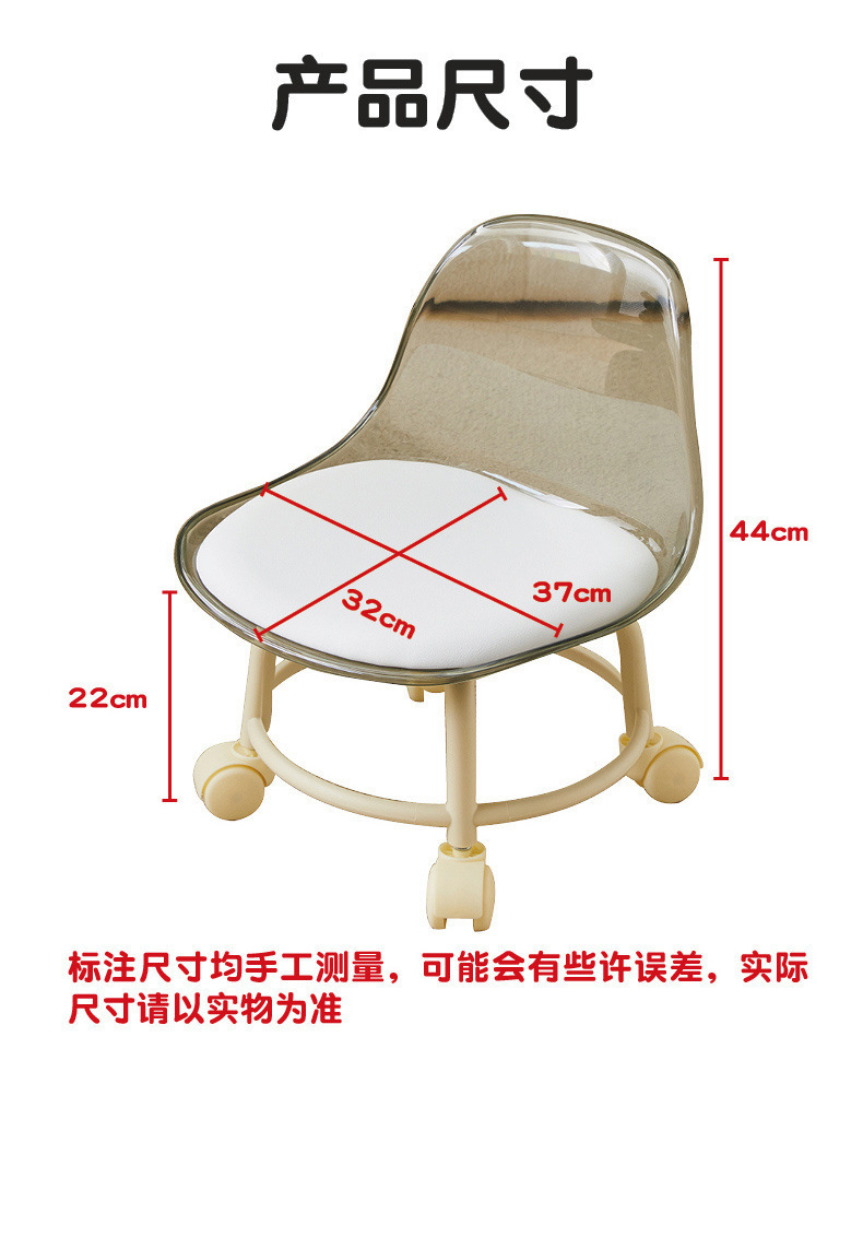 아크릴 의자 침묵 투명 범용 휠 어린이 유아 가정용 의자 인터넷 연예인 아기 작은 의자 도르래 낮은 의자스토어 가기