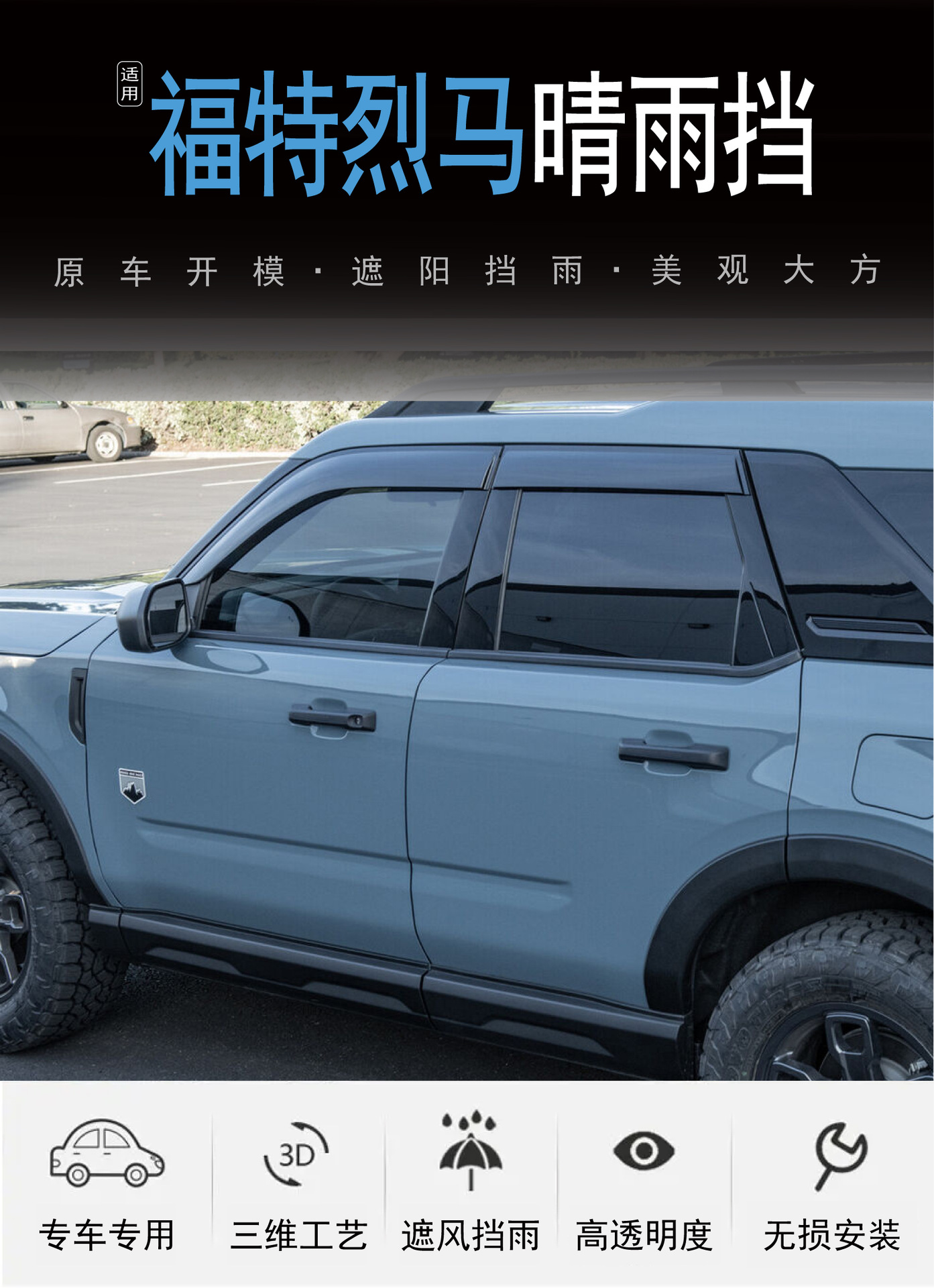 2021-24 Ford Bronco 창문 차단 및 내장형 자동차 비 차단 장치에 적합스토어 가기