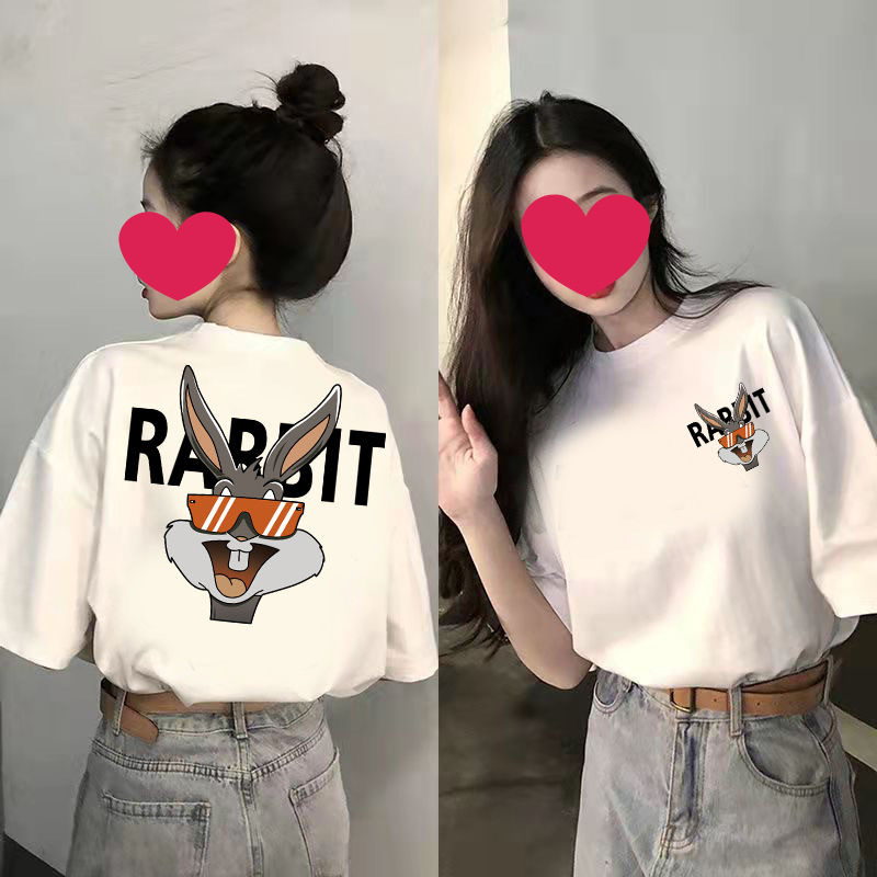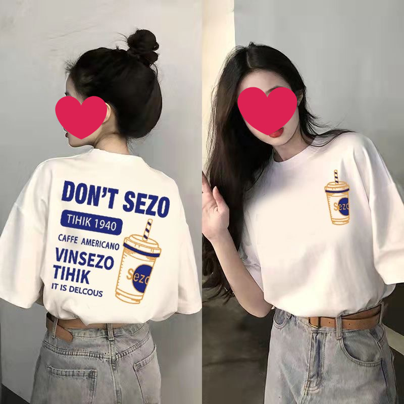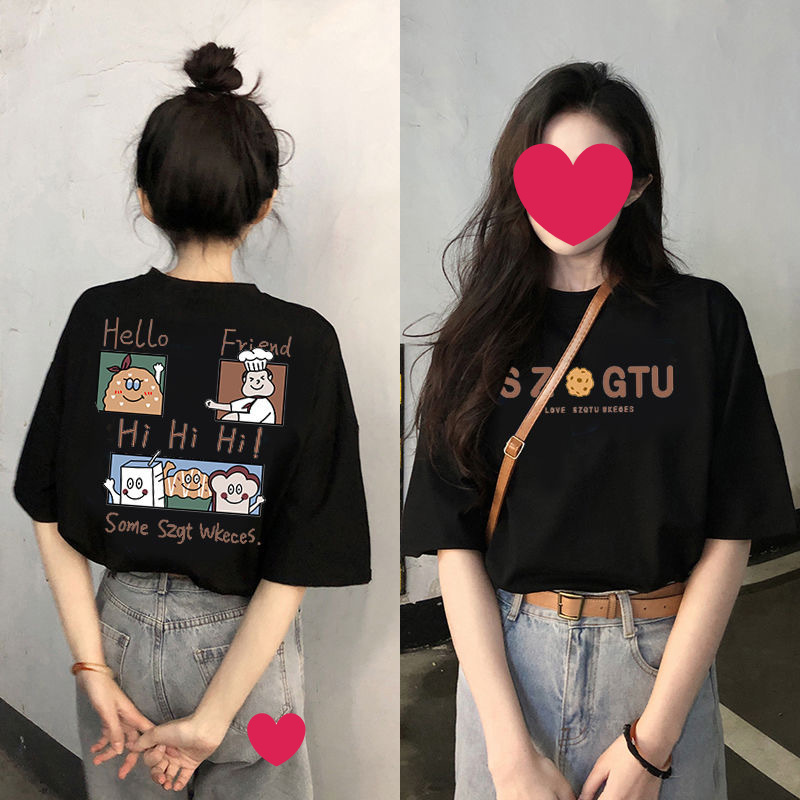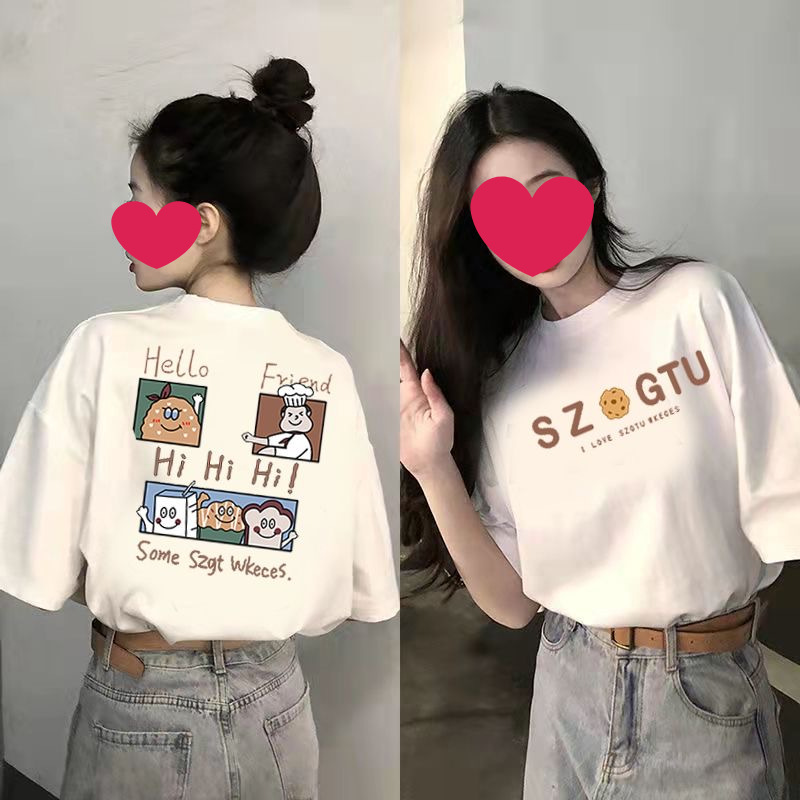 여름 면화 반팔 여성 한국식 흰색 귀여운 만화 인쇄 티셔츠 느슨한 대형 대학 스타일 인스타그램 인기 여성스토어 가기