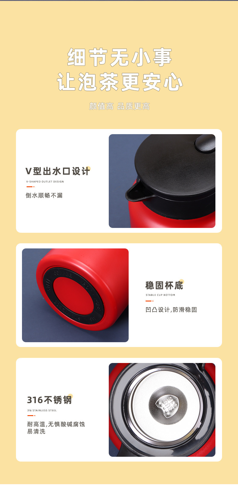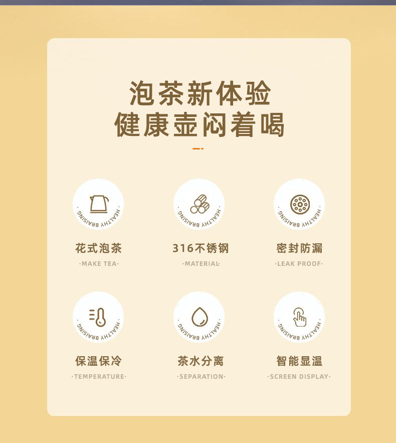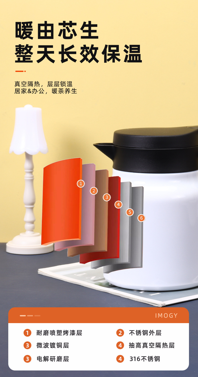 차홍316 스테인리스 차와 물 분리 보온 주전자 800-1500ml 지능형 온도 표시 보온 주전자스토어 가기