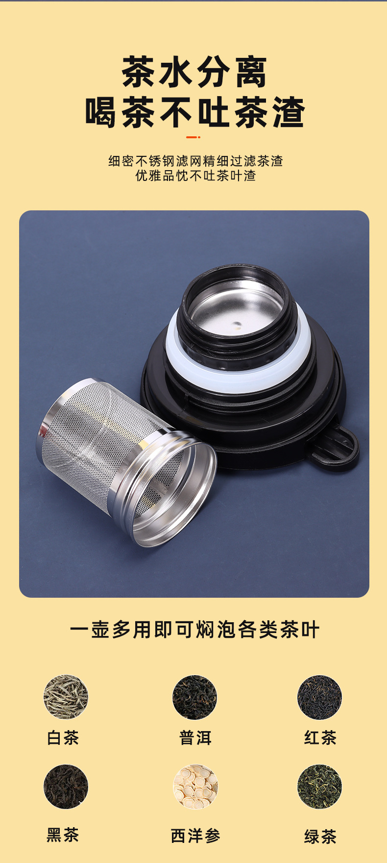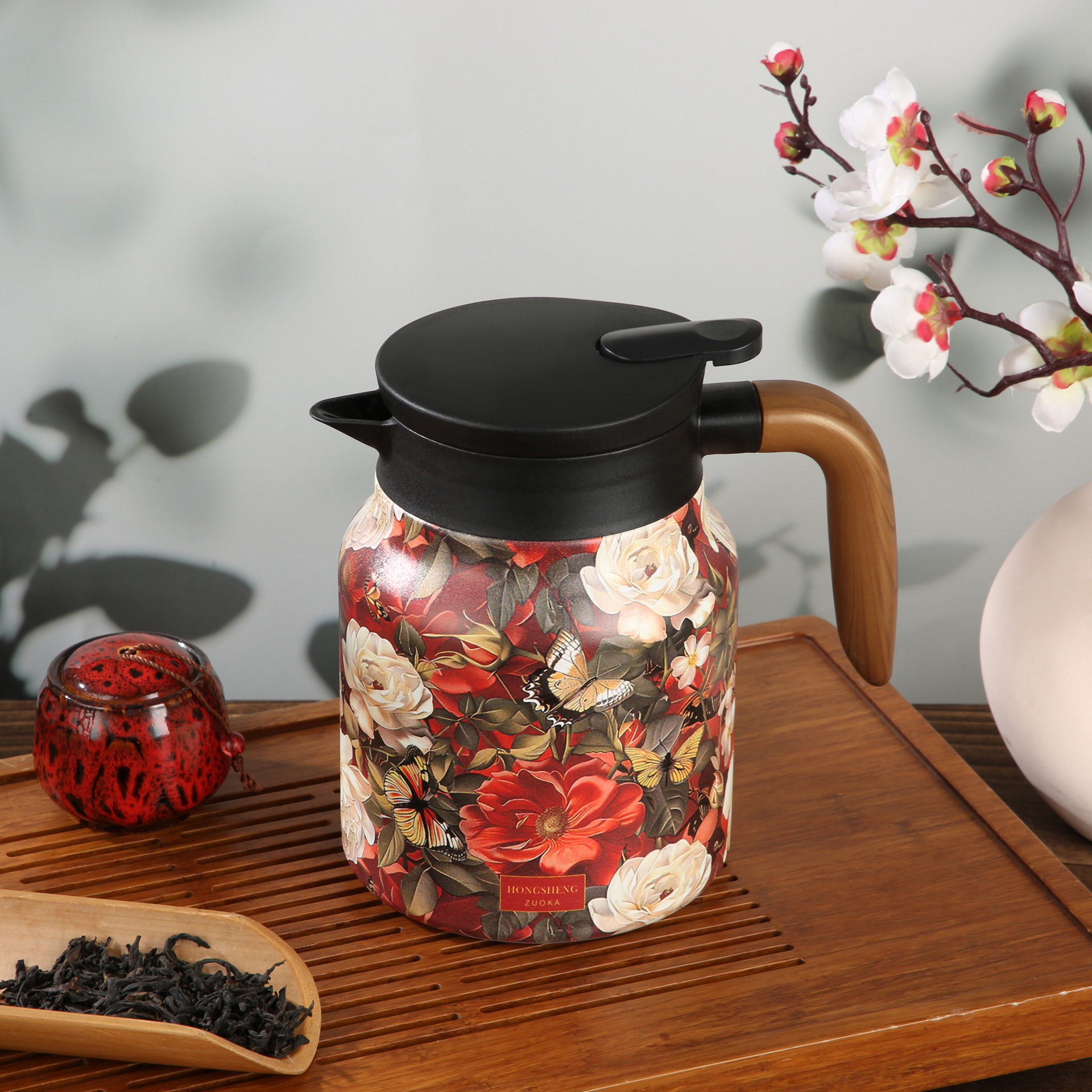 차홍316 스테인리스 차와 물 분리 보온 주전자 800-1500ml 지능형 온도 표시 보온 주전자